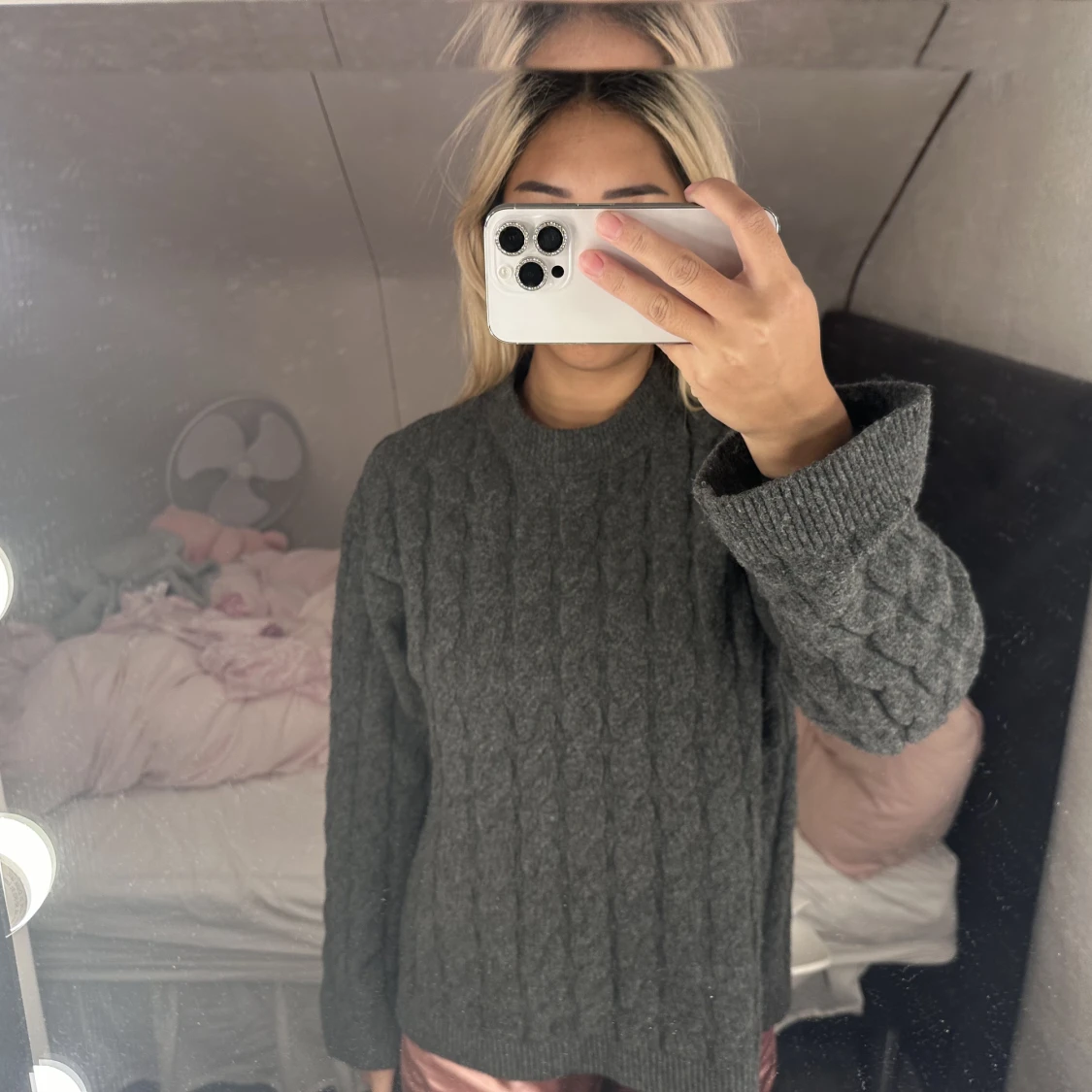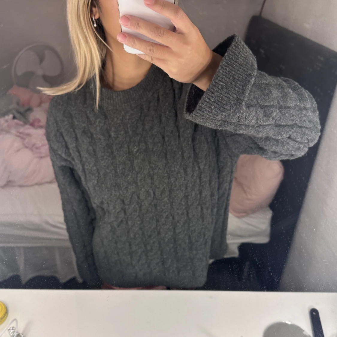 En grå stickad tröja ifrån h&m väldigt fin och endast använd en gång.