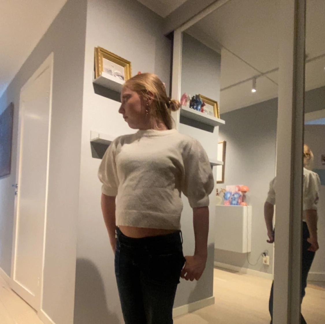 En fin vit tröja från Gina med puff armarmar!😙🩷jag har and vänt den 1 gång!🌸✨