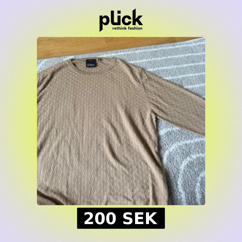 Snygg beige stickad tröja från Oscar Jacobson i storlek M. Tröjan har ett rutmönster, rund hals och långa ärmar. Mycket bra skick!