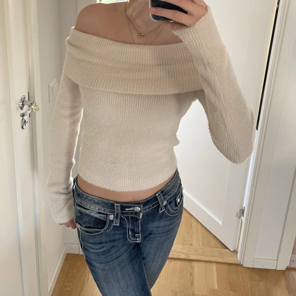 Så mysig stickad ofshoulder tröja från bershka! Helt oanvänd i nyskick med lappen kvar. Den är helt perfekt nu till hösten och vintern! Lägg gärna prisförslag och fråga efter fler bilder om ni vill❤️