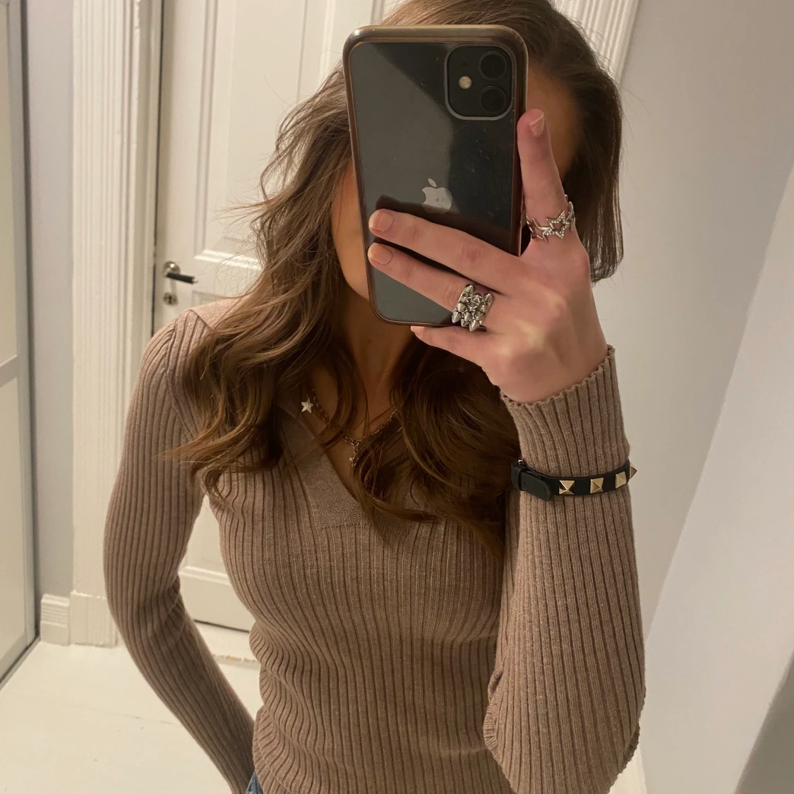 Jätte snygg brun stickad tröja, använd endast ett fåtal gånger så är i mycket bra skick