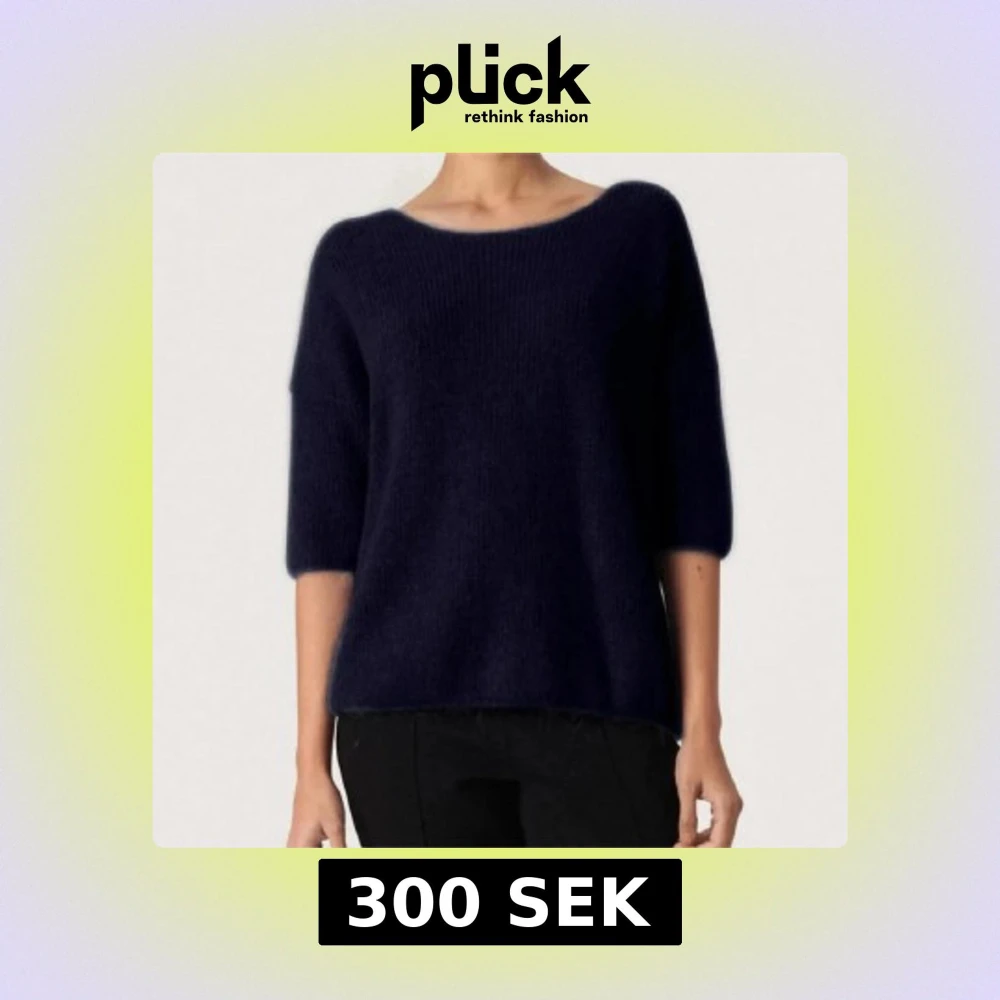 Marinblå trekvartsärmad stickad tröja från Soaked in Luxury.💙