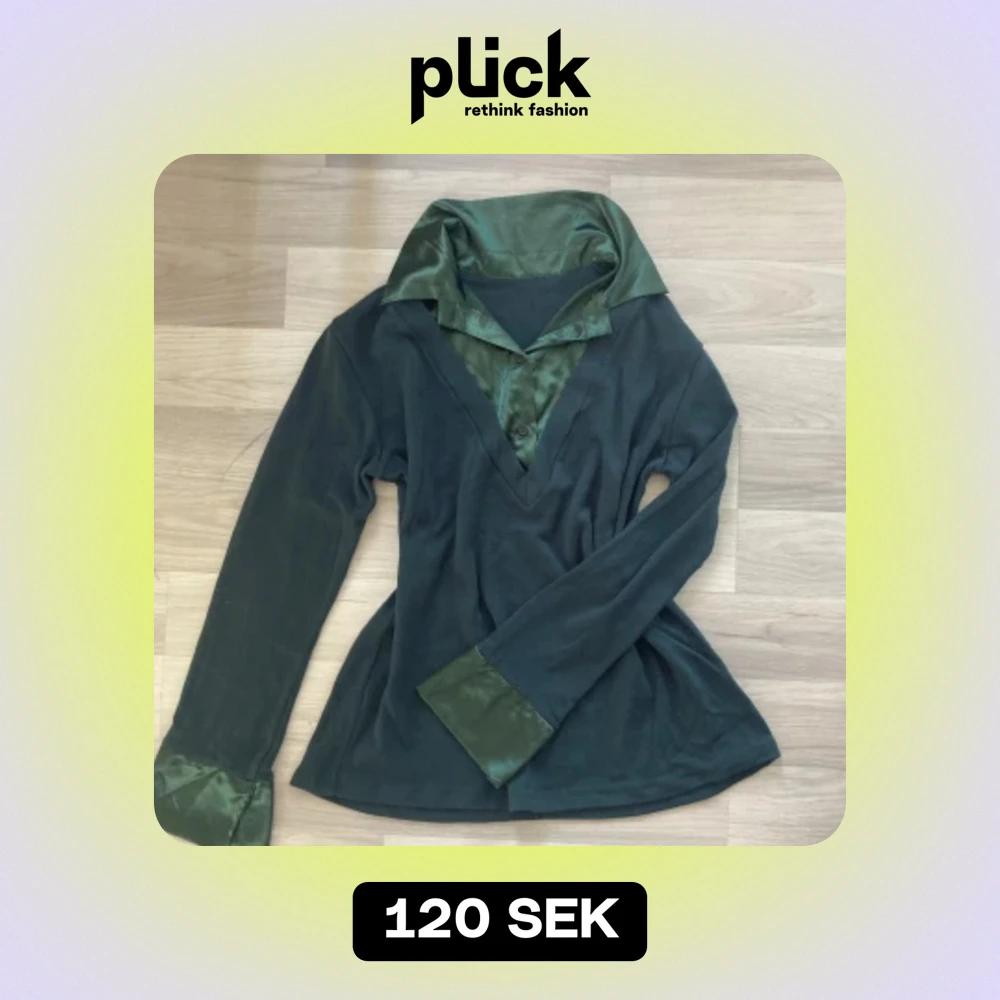 Jättefin grön finstickad tröja med silkes krage och utsvängda ärmar💓 Fina detaljer och form💓