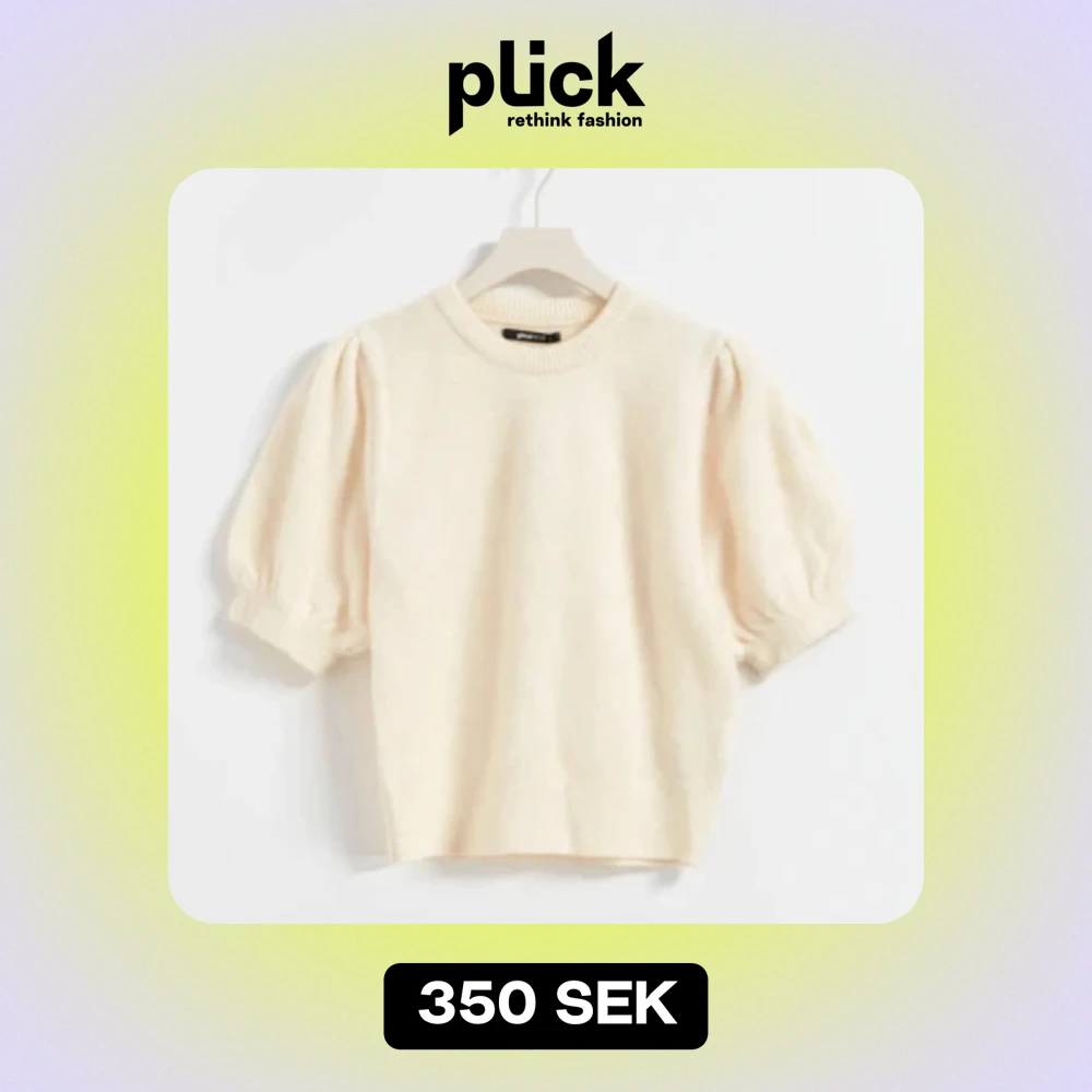 Stickad kortärmad tröja med puffärm, storlek xs❤️