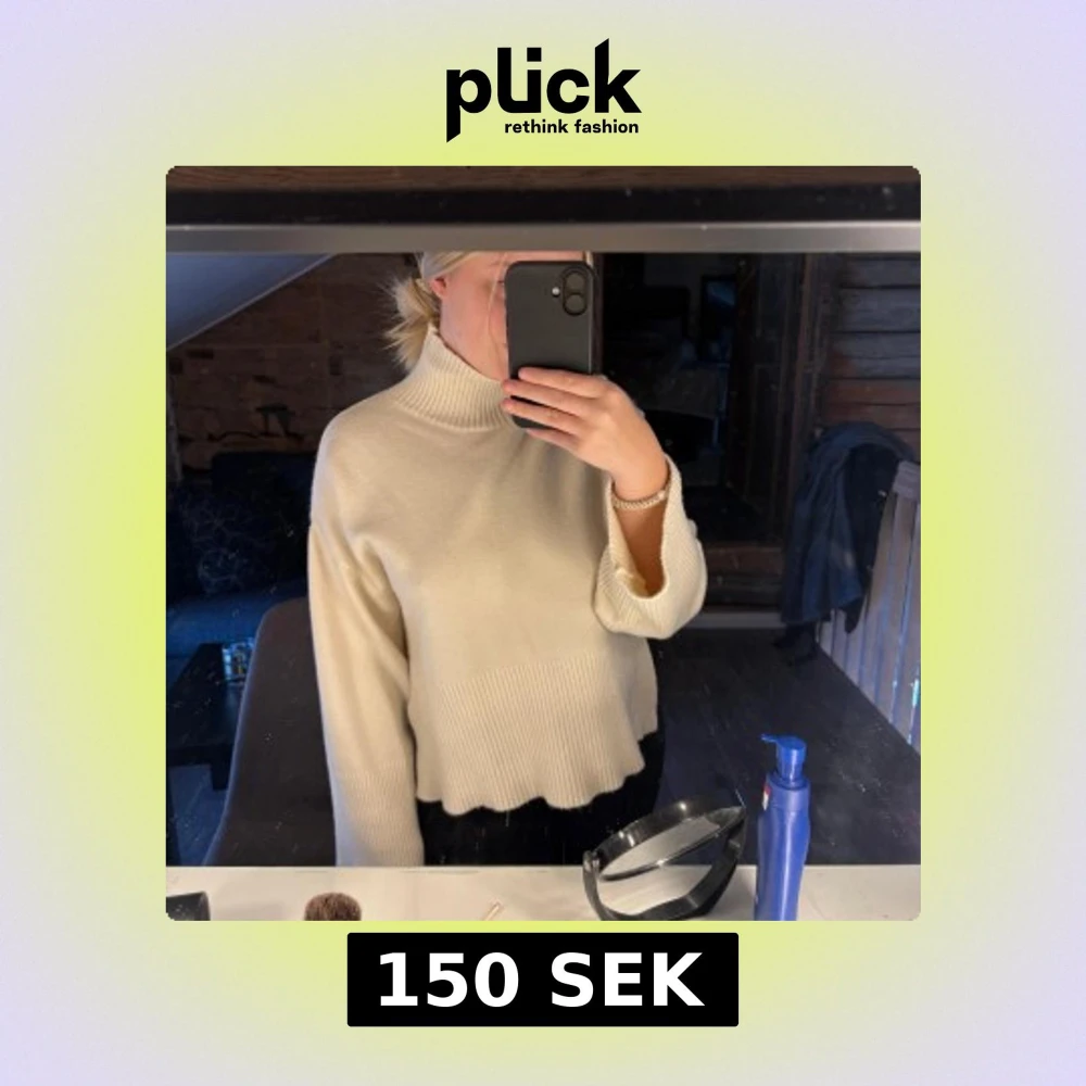 Säljer en mysig beige/vit stickad polotröja med långa ärmar och ribbade detaljer vid ärmslut och nederkant. Jag köpte den på Plick för ett tag sedan men kommer ej till användning. Den är ifrån Gina Tricot i storlek xs💖