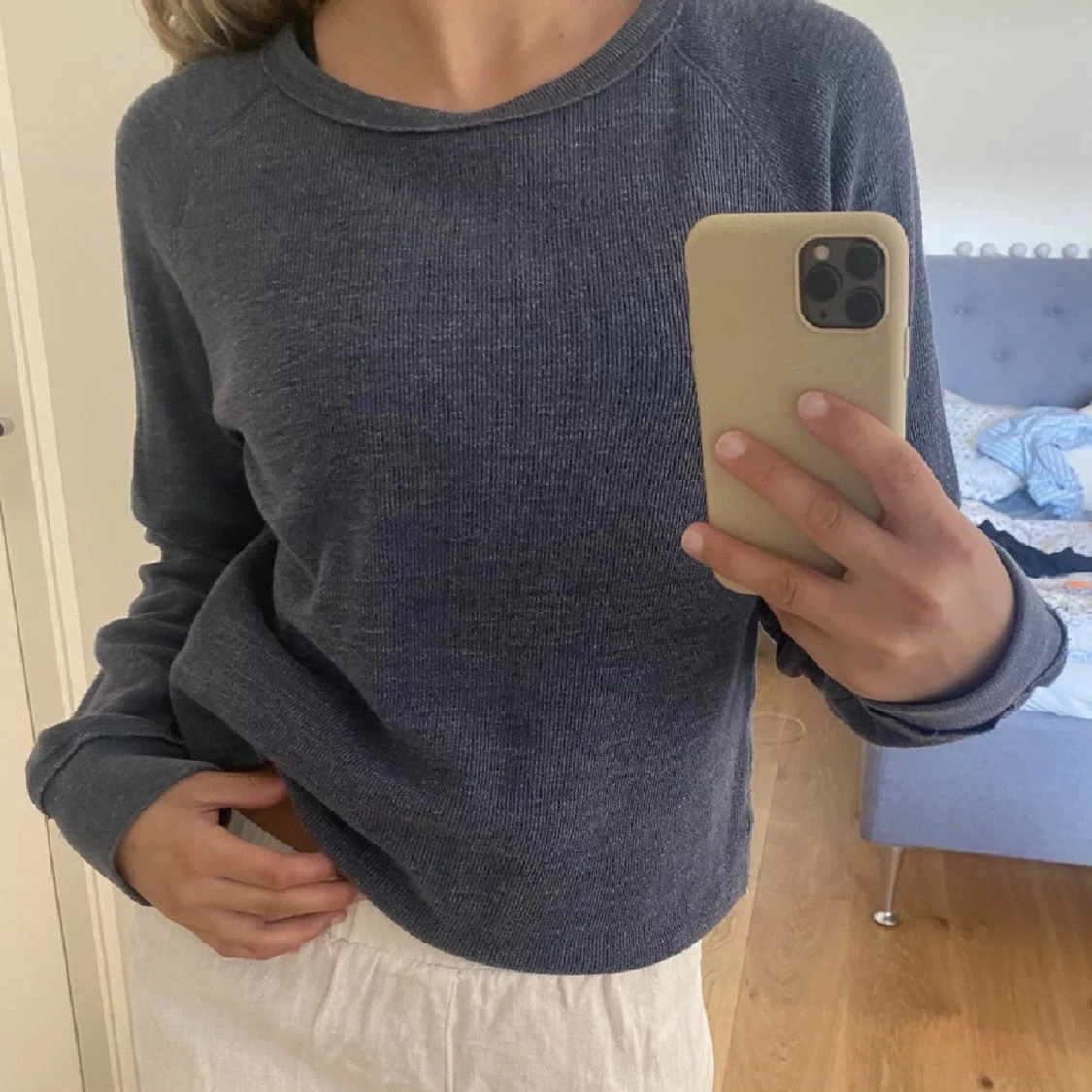 Så skön blå collegetröja från H&M, den är unisex och storleken är bortklippt men tror den är M (lite oversized S) 💙 Använt skick men ändå fin, inga defekter som hål eller så!