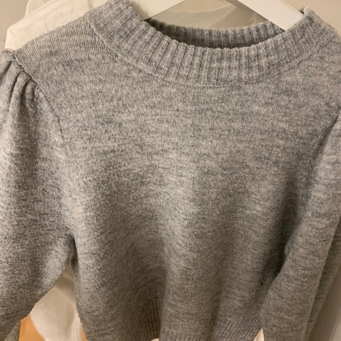Stickad tröja med volang ärmar, den är använd men i gott skick.