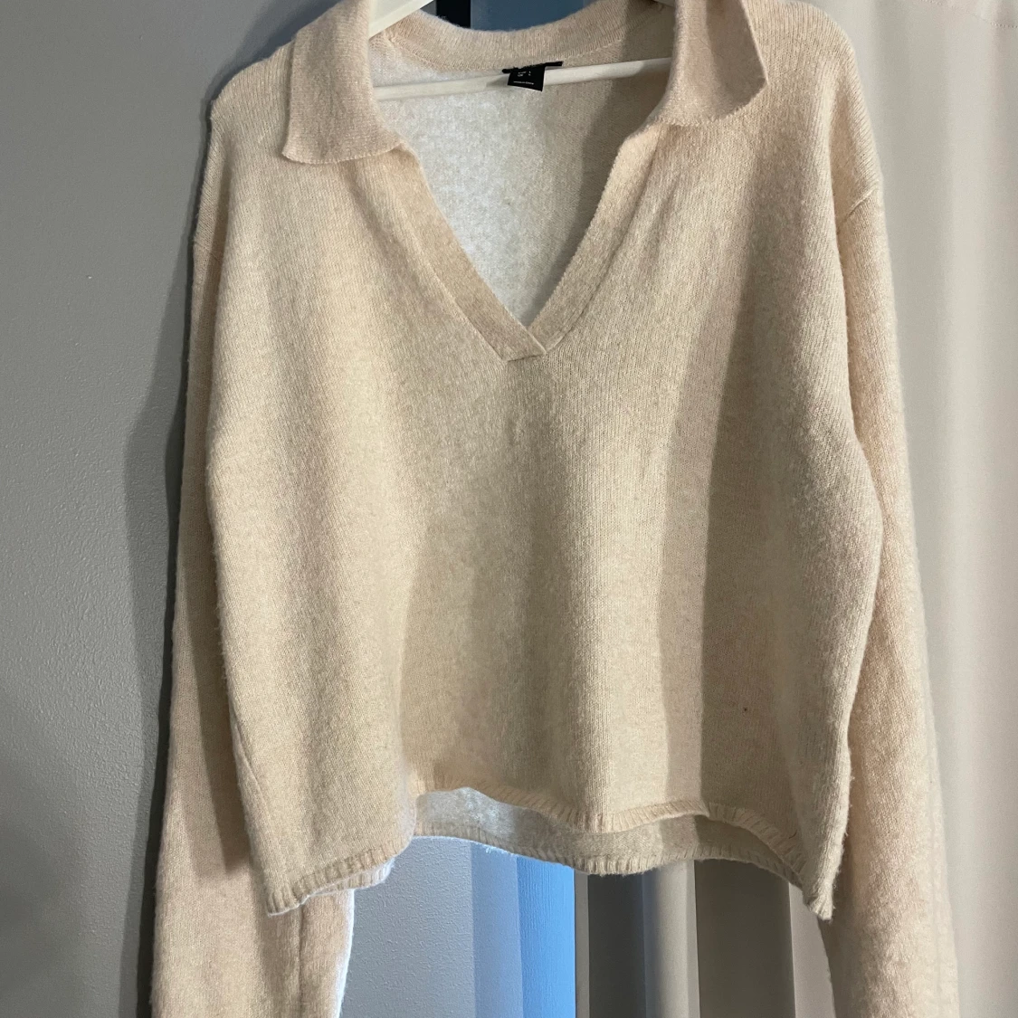 Super fin stickad tröja med krage som tyvärr inte kommer till användning, i nyskick!! I stl L men väldigt liten i storlek så passar mig som brukar ha S i tröjor annars🥰