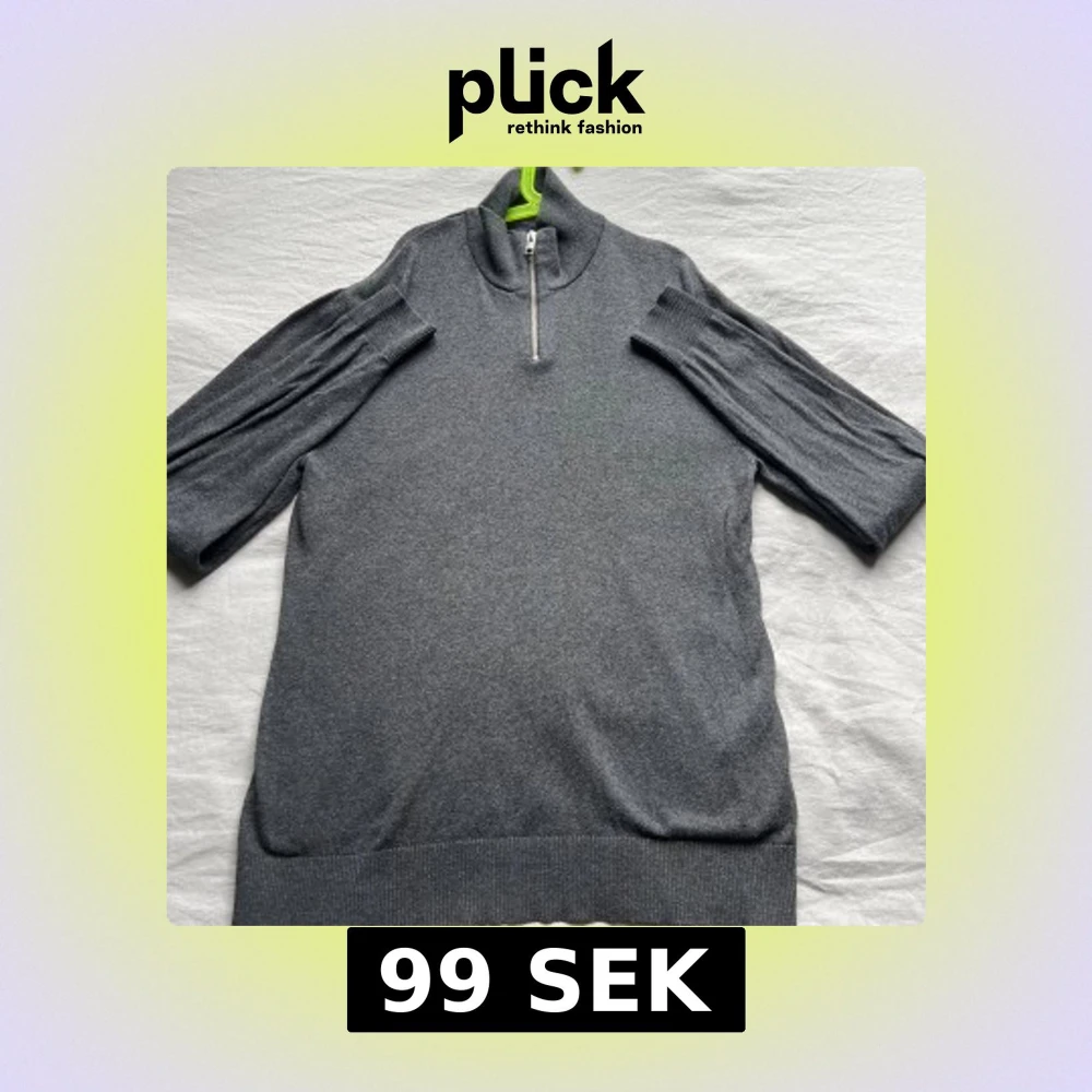 Snygg grå stickad tröja med half zip och hög krage. Tröjan har ribbade muddar och långärmad design som ger en chill och stilren vibe. Perfekt för dig som gillar enkel men cool stil.