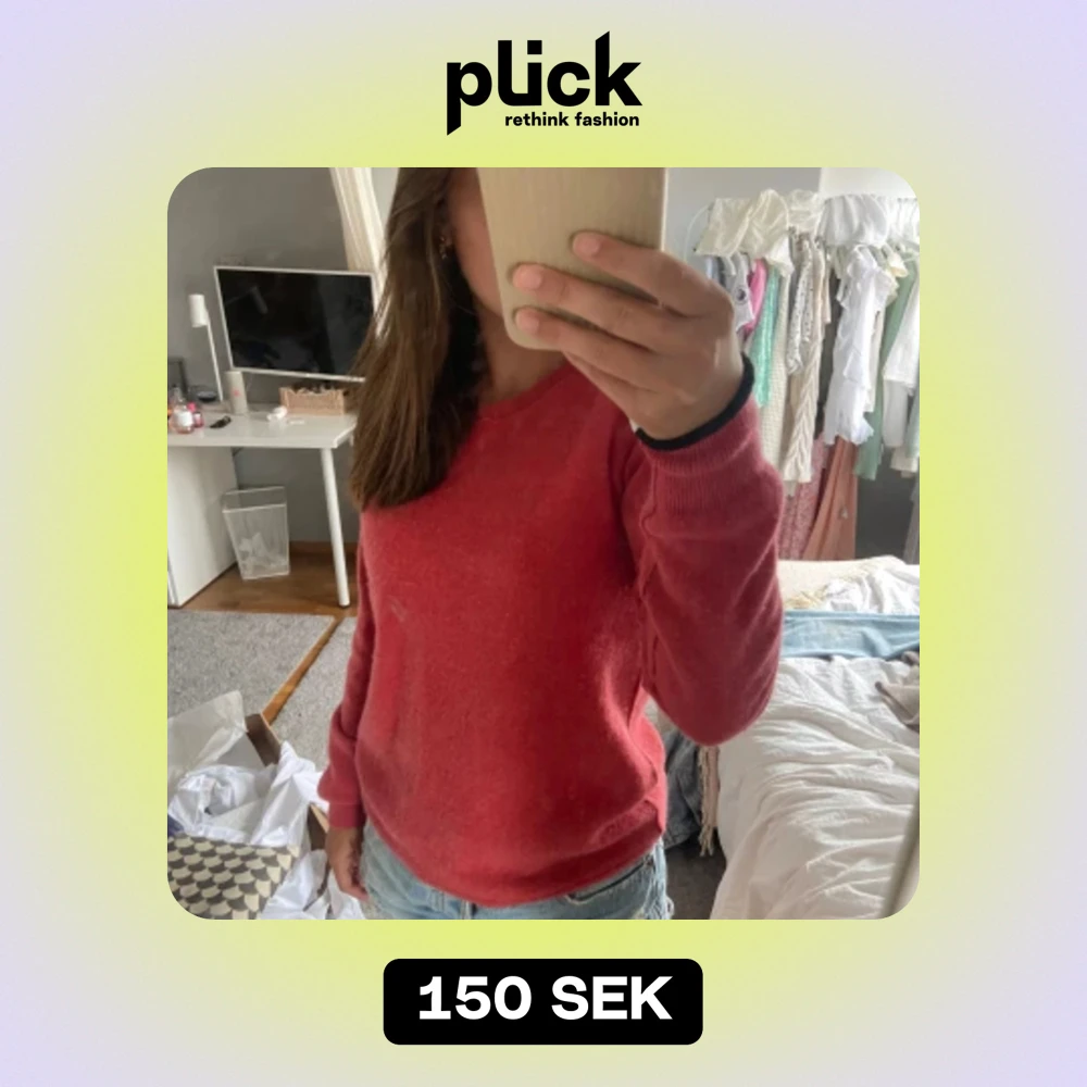 Jag säljer min röda stickade tröja. Den är hyfsat tunn och är perfekt nu till sen sommaren. Den är använd endast ett fåtal gånger. Den är i storleken s.