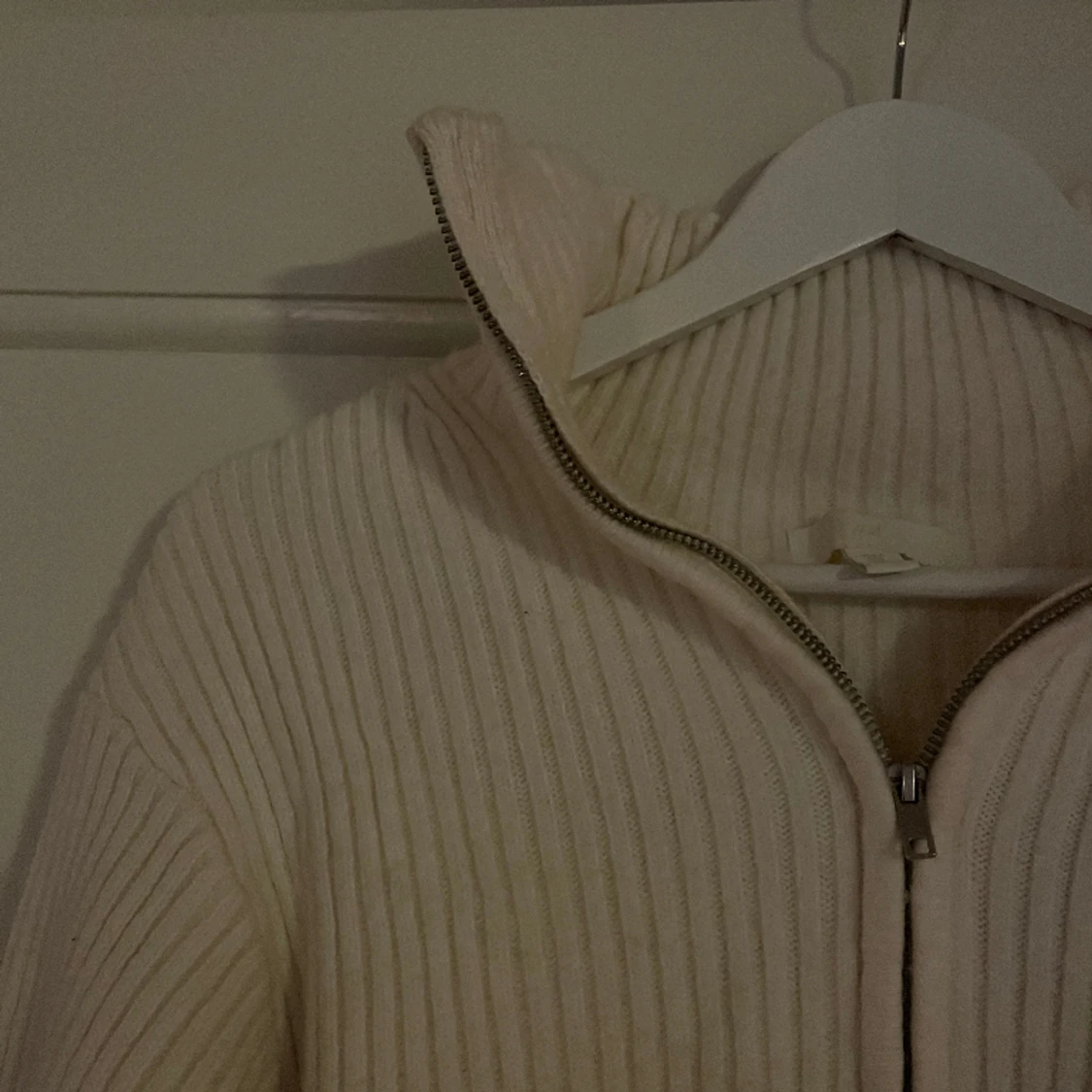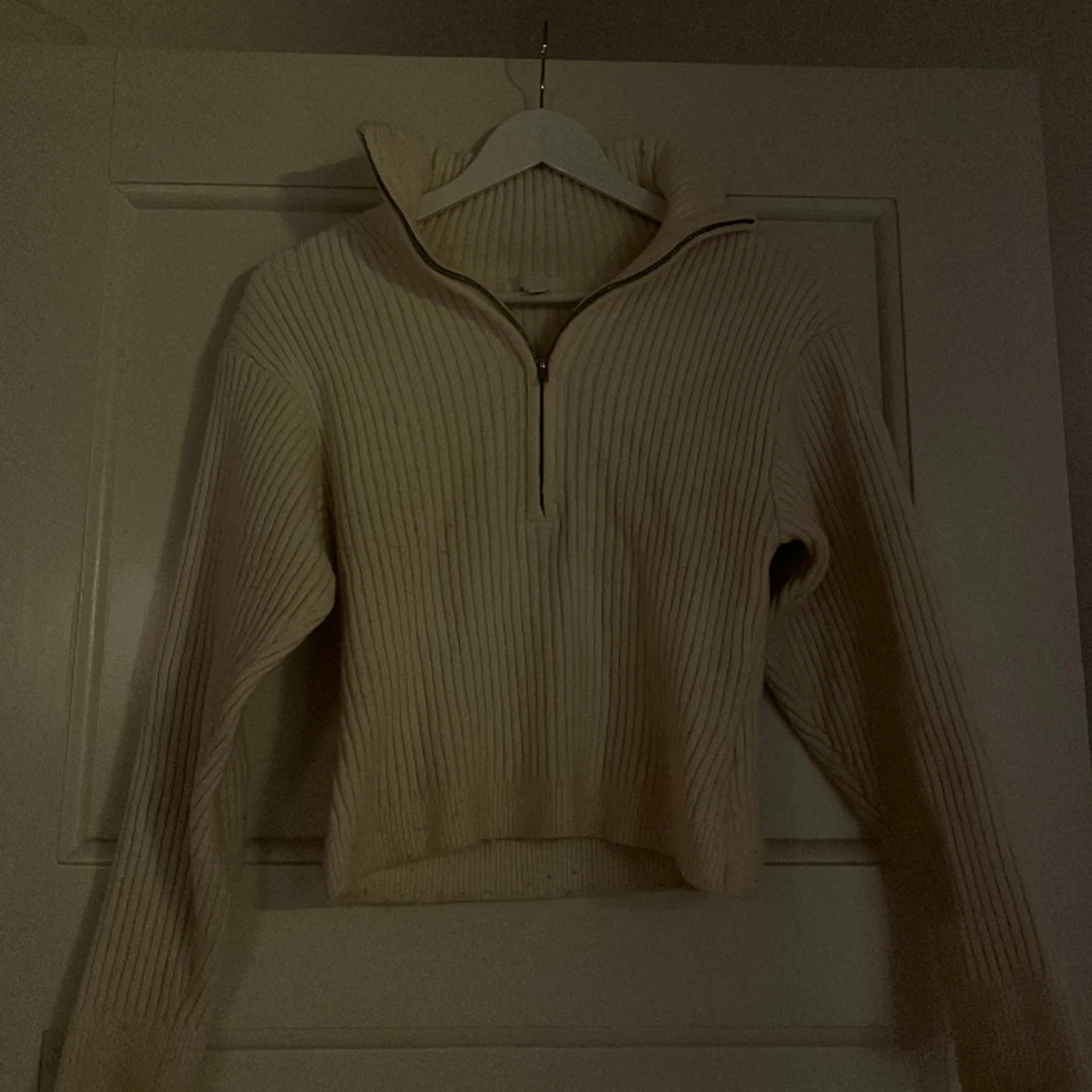 Superfin stickad tröja med dragkedja i halsen.