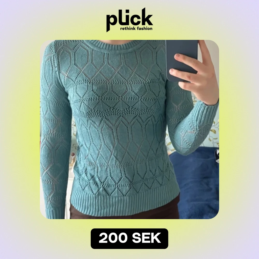 En stickad tröja i färgen turkos. Perfekt till våren. Har använts men inte alls mycket.