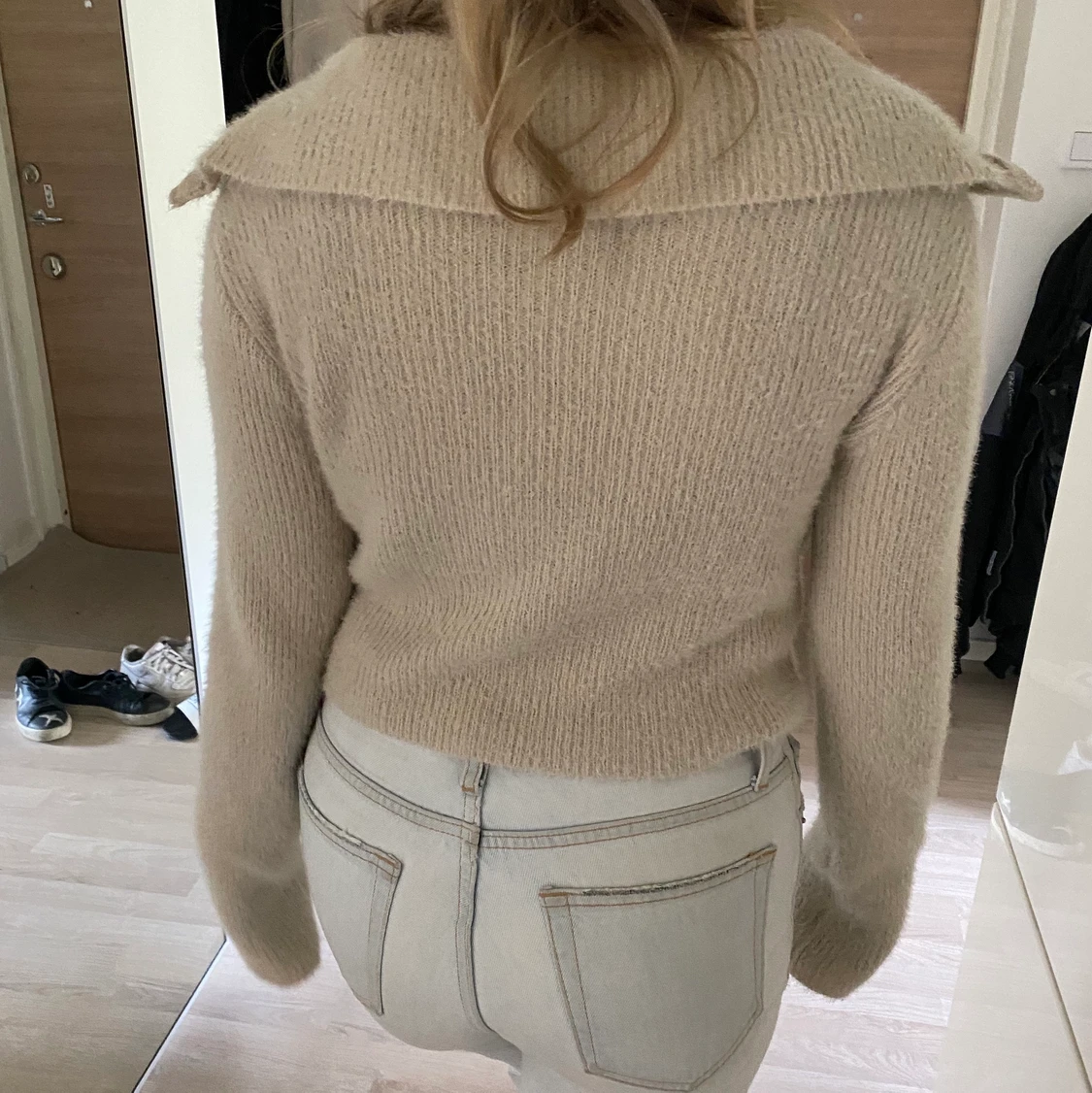 Säljer denna snygga stickade zara tröjan med dragkedja. Den är i tunt material och så skön i materialet helt perfekt till hösten💖 knappt använd så väldigt bra skick. Buda på💕