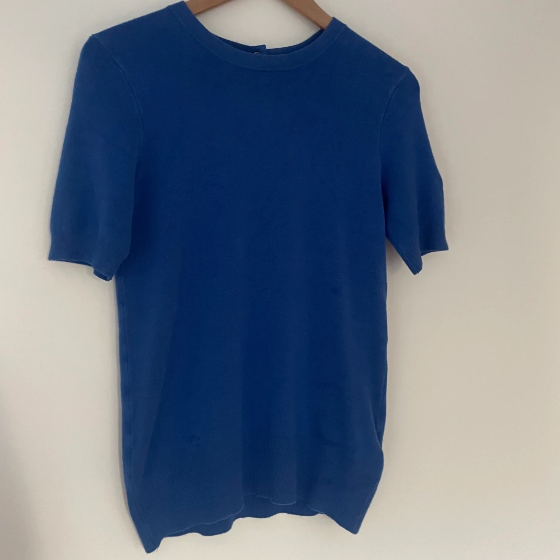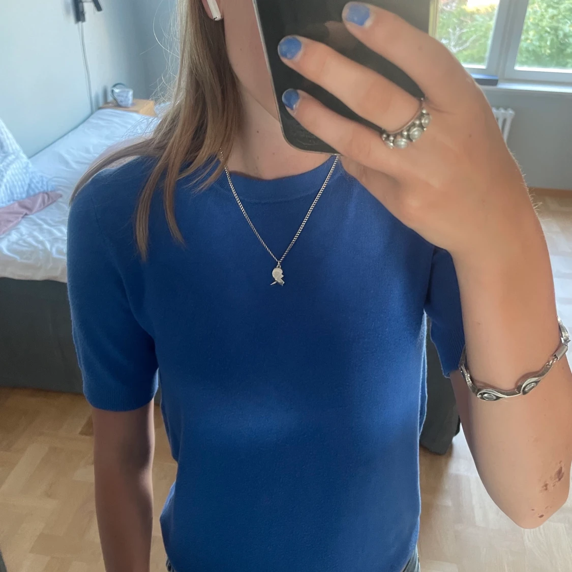 Säljer min älskade blå stickade tröja från zara!! Väl använd men i okej skick💗