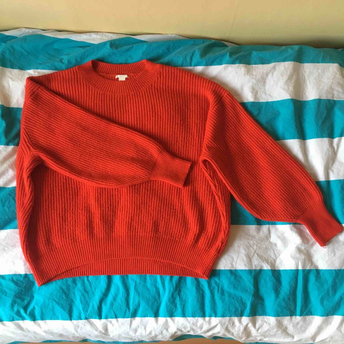 Säljer min supermysiga stickade tröja från H&M då den tyvärr inte används längre. Den är i fint skick och väldigt over-sized och materialet sticks inte! Jag tar swish och kan mötas upp i Stockholm, kan även skicka den men då tillkommer frakt.