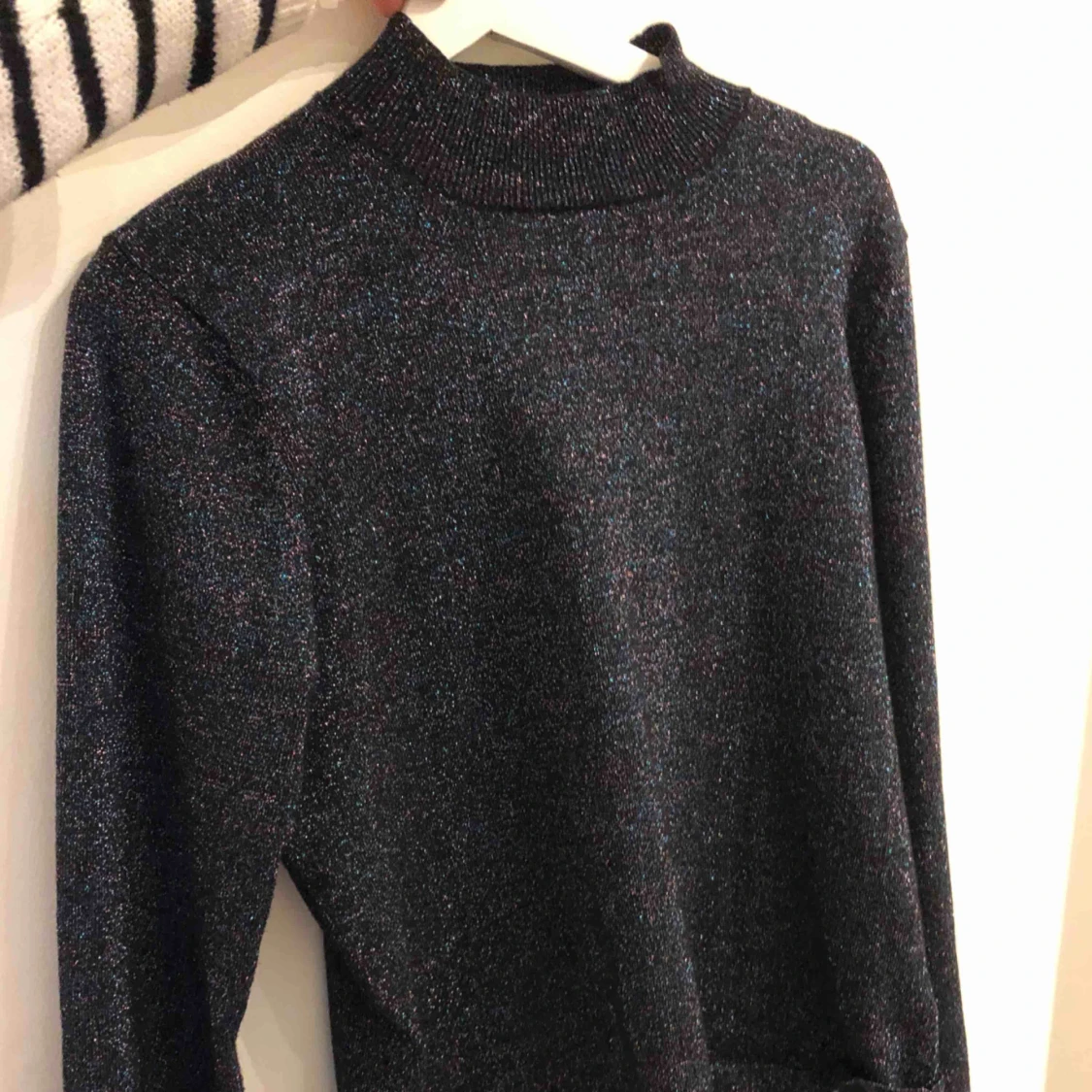 Sparsamt använd halvpolo, glittrig och lite tunt stickad