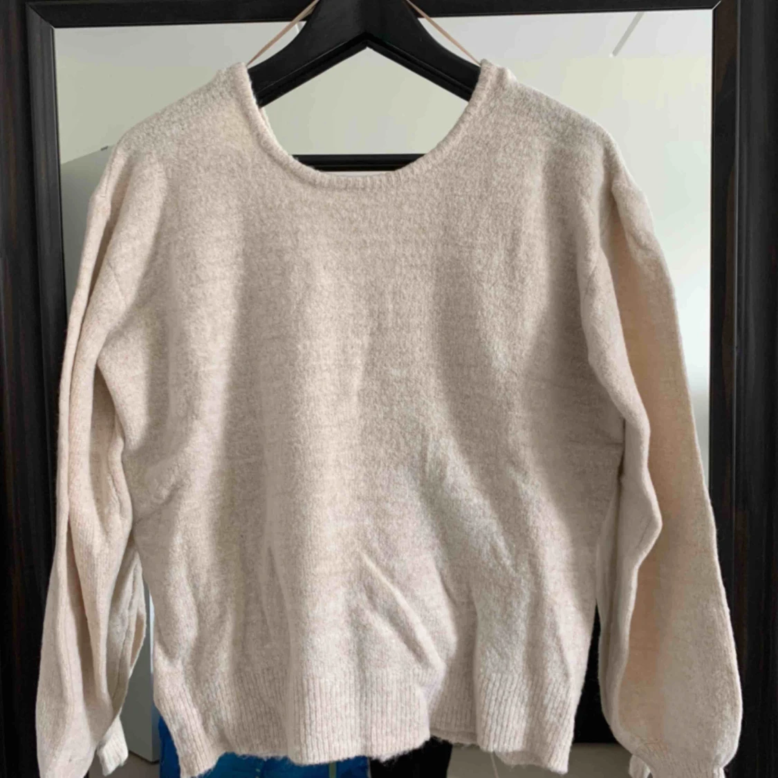 Beige stickad tröja med loose fit - Mysig beige stickad tröja med loose passform och långärmade ärmar. Tröjan har en enkel design utan mönster eller detaljer, perfekt att matcha med jeans eller kjol. Materialet är mjukt och fluffigt, vilket gör den extra skön under kyliga dagar.