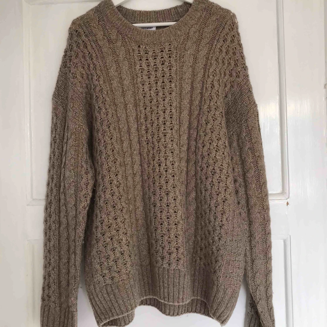 Super snygg stickad beige stickad tröja från weekday i storleken L💕 endast använd ett fåtal gånger, 120kr exklusive frakt 💓