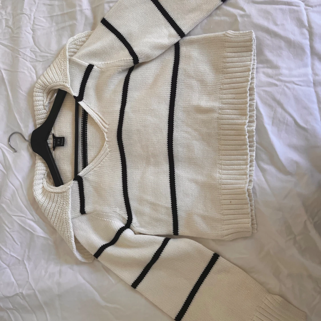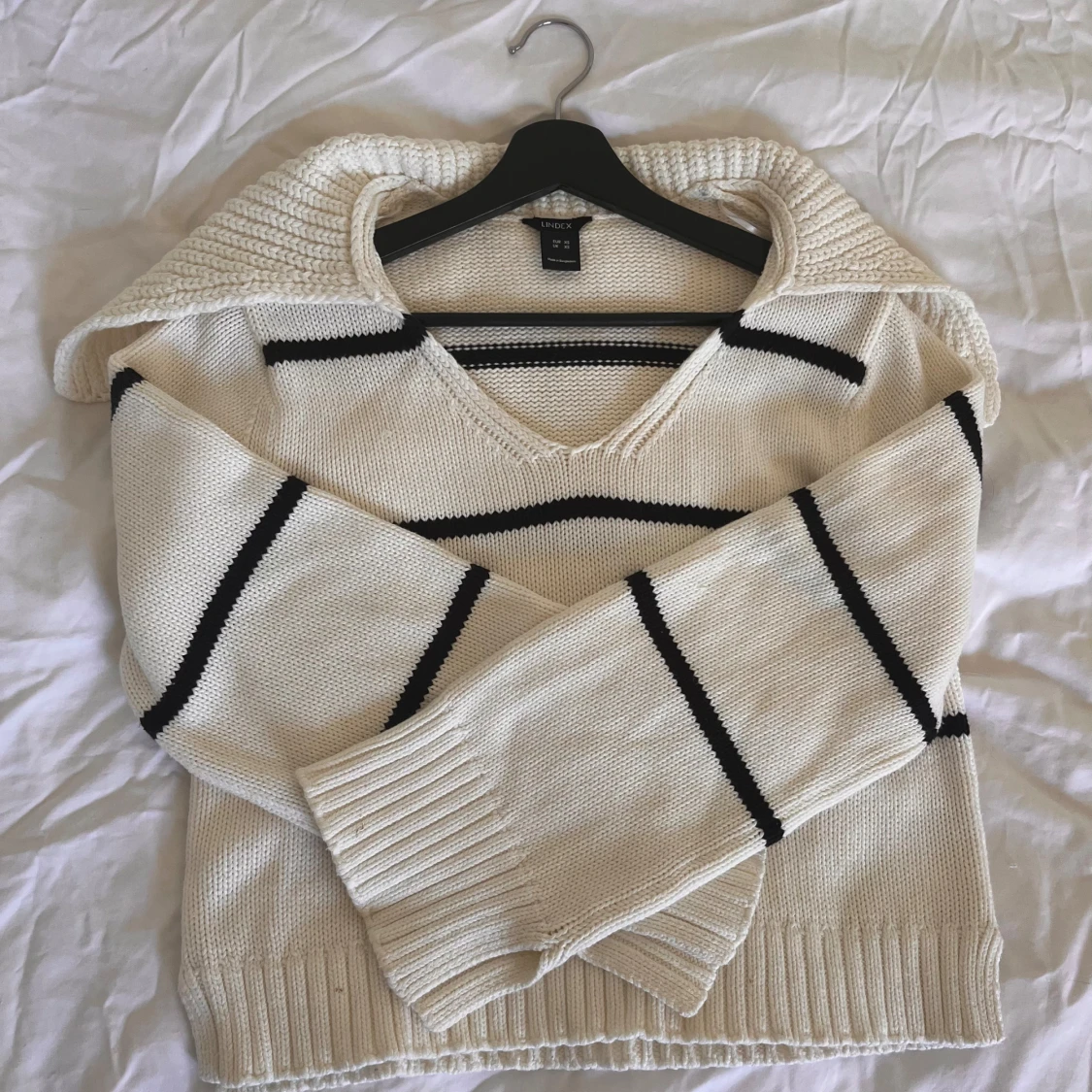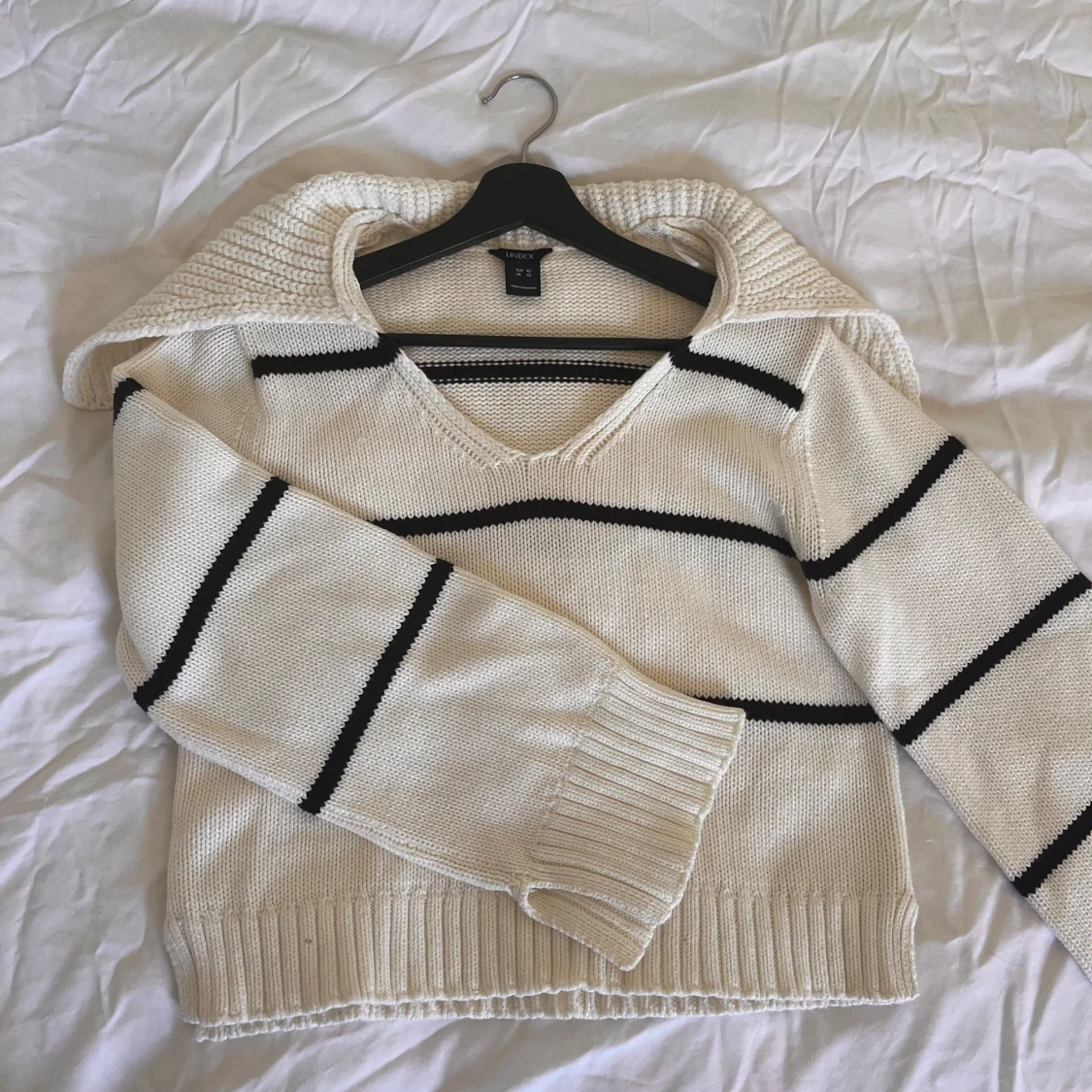 Endast använd två gånger. Mycket bra skick. Lite stor i storleken. Ärmarna kan bäras uppvikta. Väldigt mysig tröja. Perfekt för vintern.