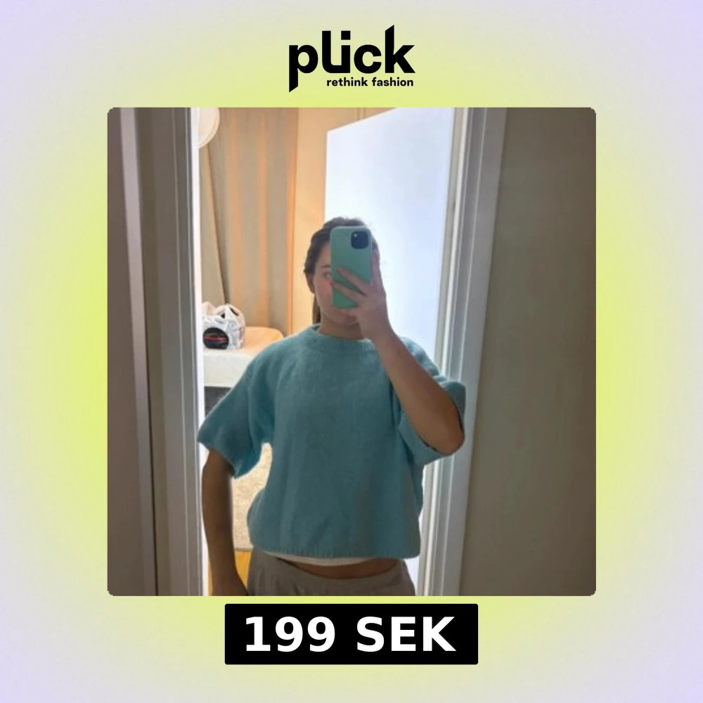 En stickad kortärmad tshirt i super snygg ljusblå/turkos färg. Köpt i Amsterdam, gjord av mohair blandning