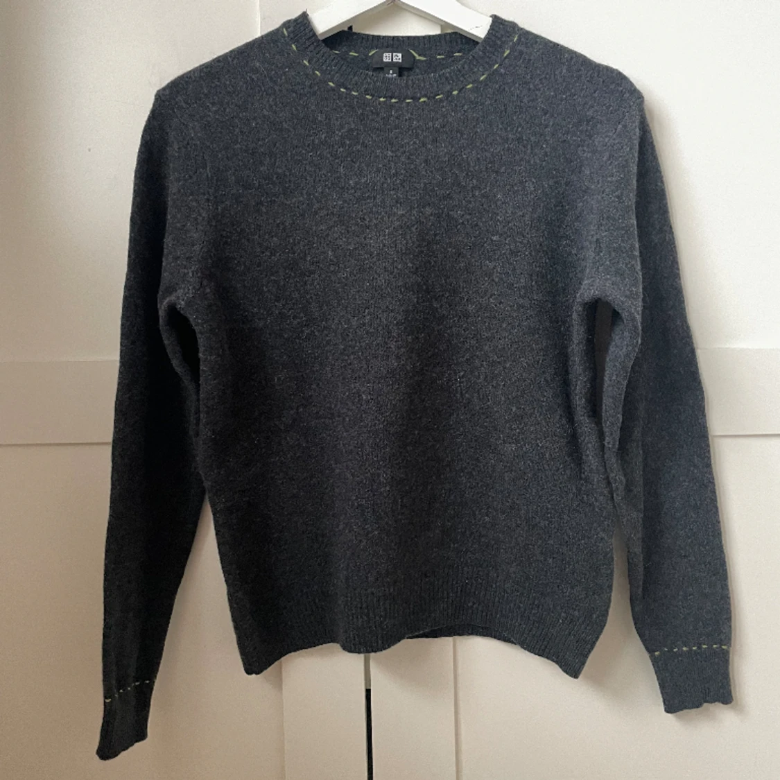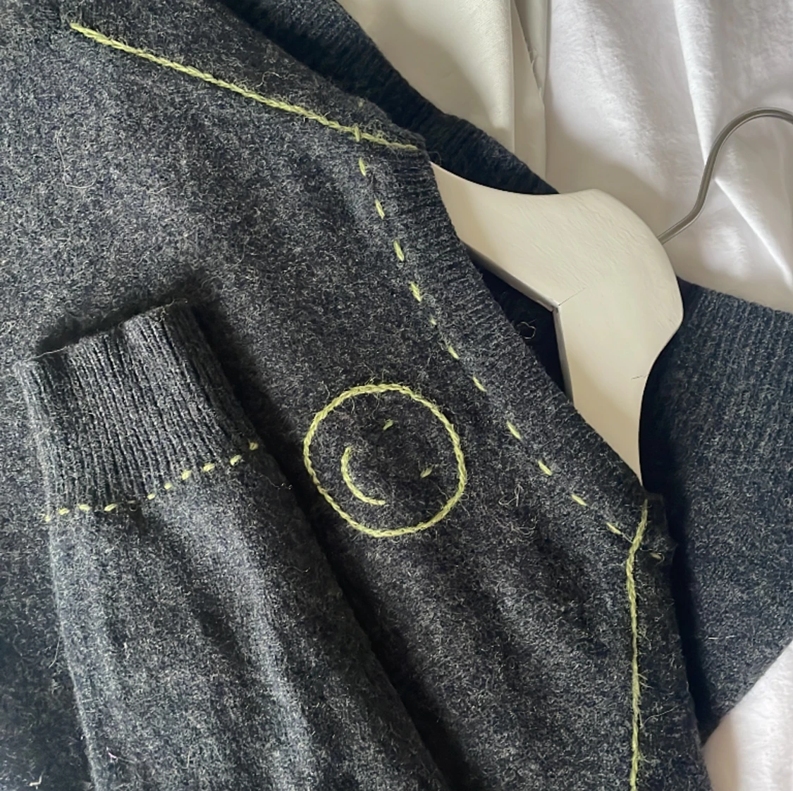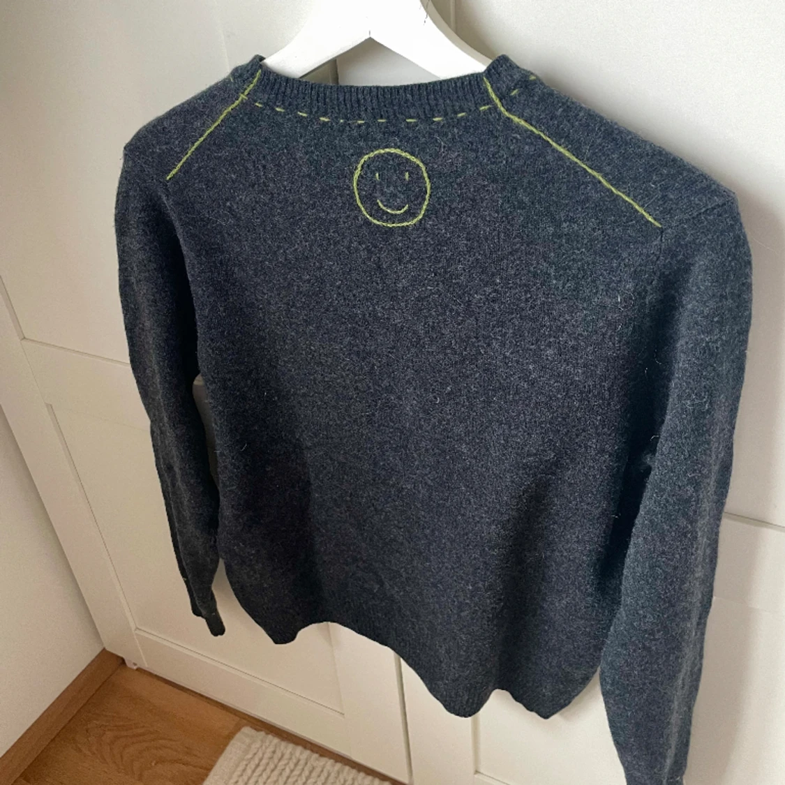 100% ull tröja. Ursprungligen köpt på uniqlo med jag har köpt den på välsorterad second hand. Därav verkar de coola broderierna vara handgjorda. 😍 står S men jag skulle säga xs-s. Bra skick. Skonsamt tvättar och avnopprad.
