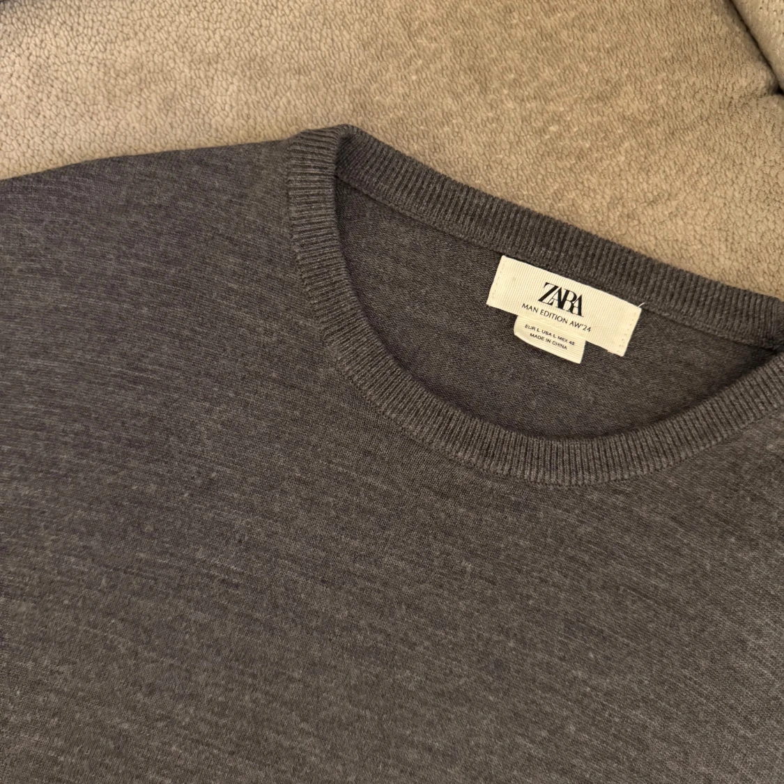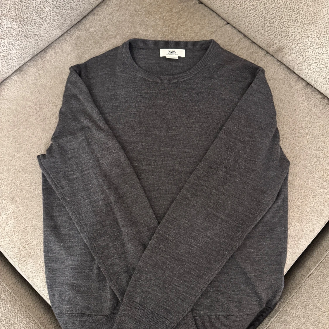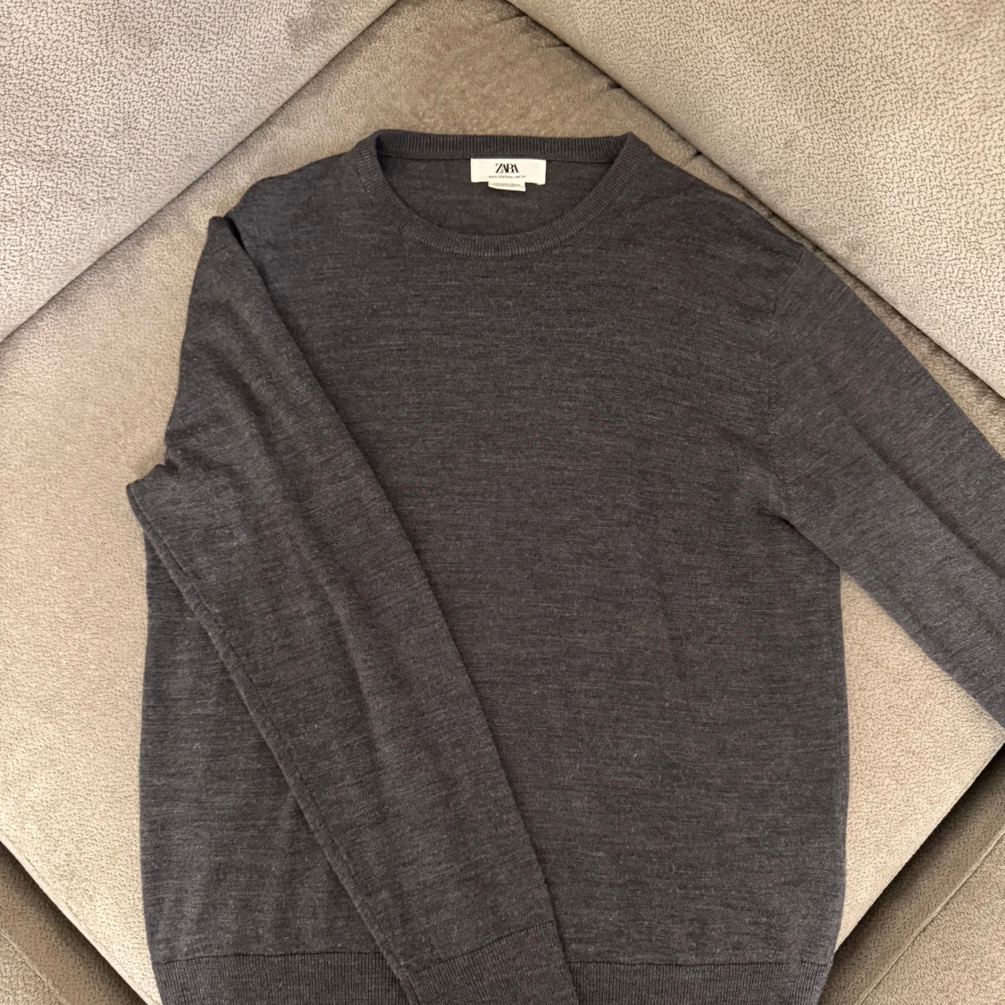 En grå ulltröja från Zara i grå färg. Den är liten i storlek, jag är 180 och den sitter bra på mig.