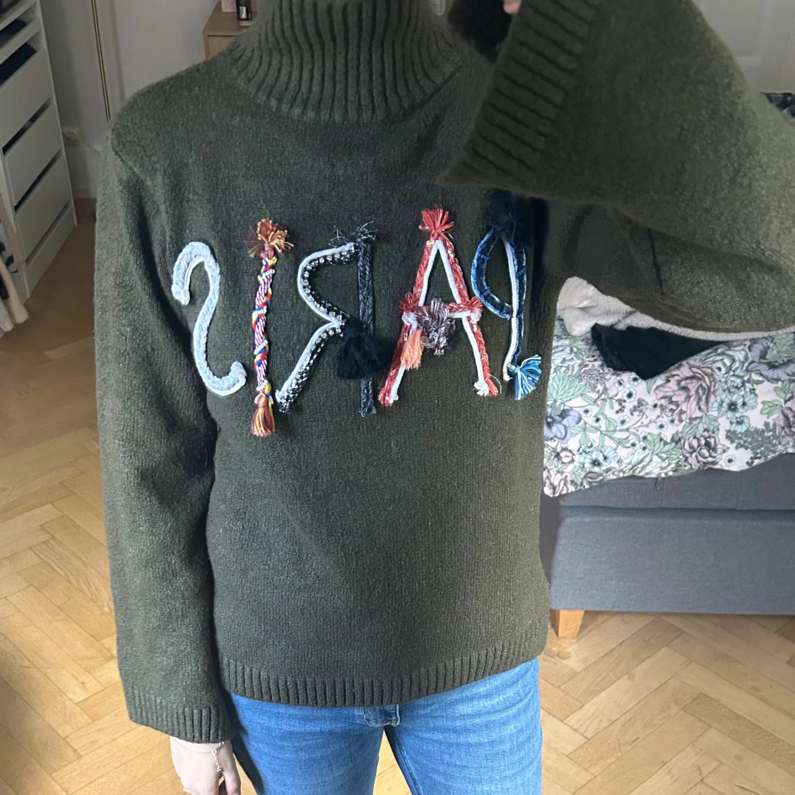 Säljer min unika superfina stickade polotröja med text😍😍 super fin mörkgrön färg med mycket detaljer! Från olene💓