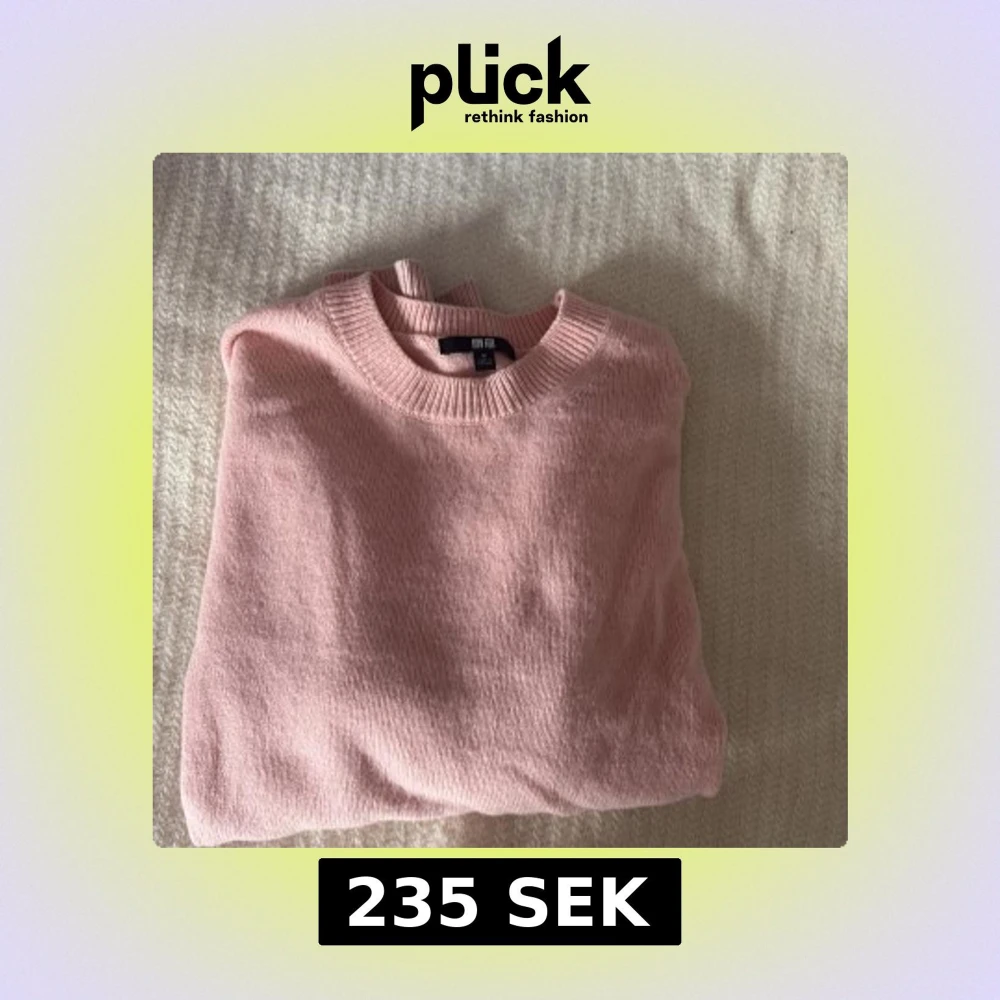 Mysig ljusrosa stickad tröja från Uniqlo med rund halsringning och ribbade muddar. Perfekt för lager-på-lager och enkel att matcha med olika outfits.