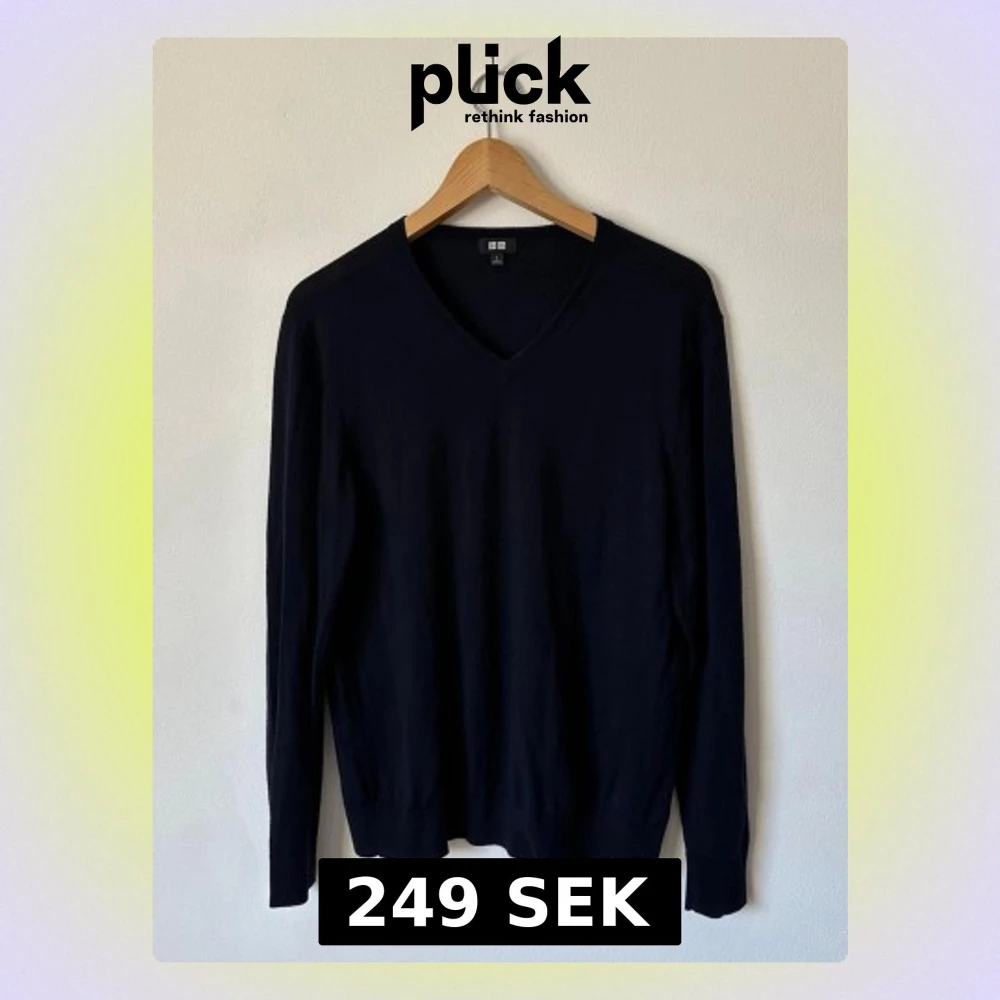 Klassisk svart stickad tröja från Uniqlo med V-ringning och långa ärmar. Tröjan har en enkel och stilren design med ribbade muddar vid ärmslut och nederkant. Perfekt att matcha med jeans eller kjol för en clean look. 8D15