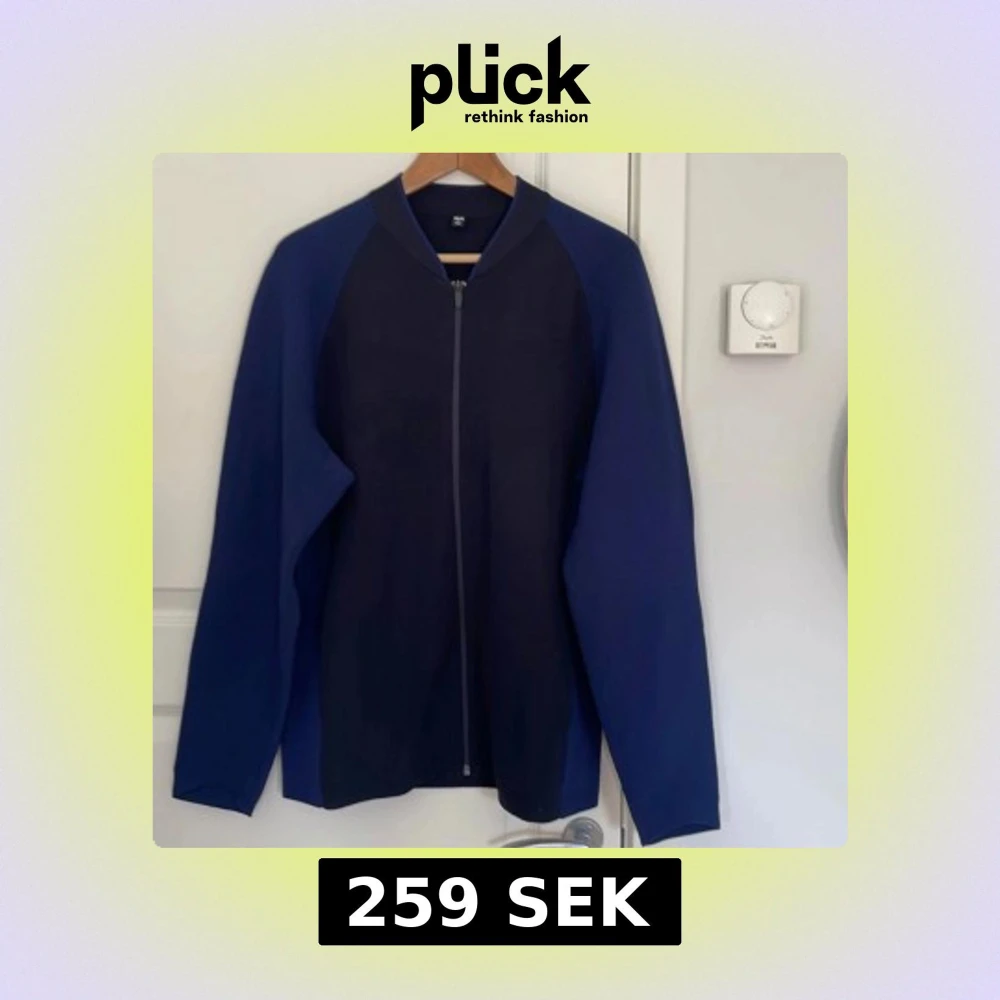 Snygg mörkblå bomberjacka från Uniqlo med hel dragkedja framtill. Jackan har ribbad krage och är tillverkad i ett mjukt, stickat material. Perfekt för dig som gillar en clean och stilren look. Passar till många olika outfits och är riktigt bekväm.