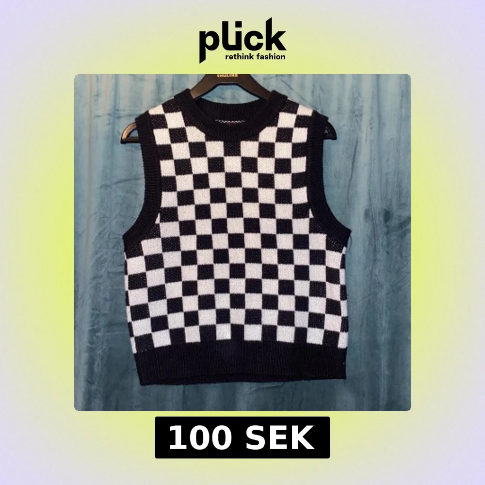 Snygg svartvit rutig väst från FB Sister i storlek S. Perfekt för att lägga till en trendig touch till din outfit. Västen har ett klassiskt rutmönster och är ärmlös med ribbade kanter.
