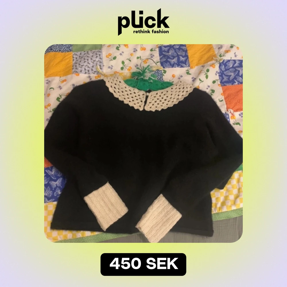 100% Cashmere sweater, was a size L but shrunk in the wash to size XS/S and thrifted by myself. Hand crocheted cuffs and collar with wool handspun yarn, sewn by hand. Luxury meets upcycling!! Feel free to message with questions about size, fit, etc!