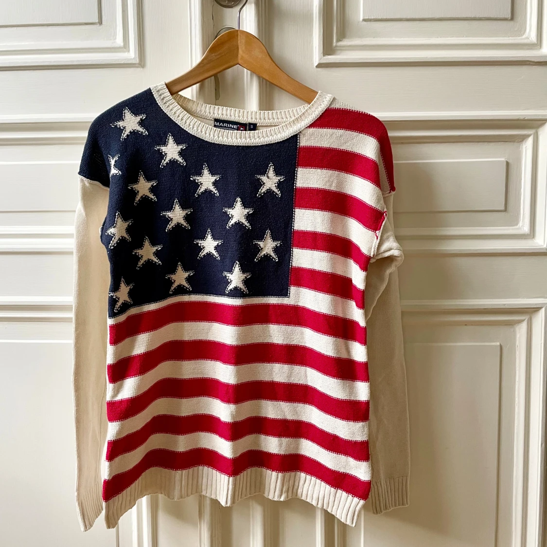 Säljer en unik stickad tröja med usa flagga, hör av er vid frågor!