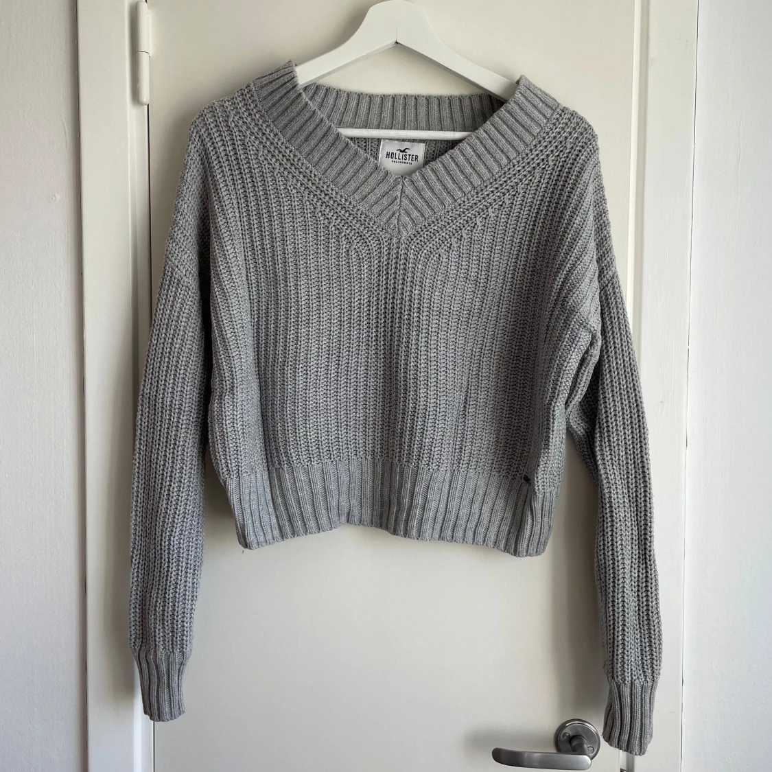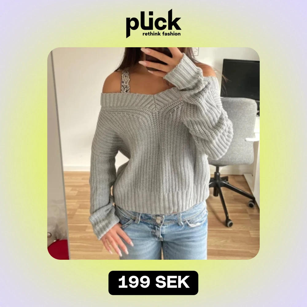 En tjock v-ringad stickad tröja perfekt för hösten☺️ använd men finns inga defekter❤️