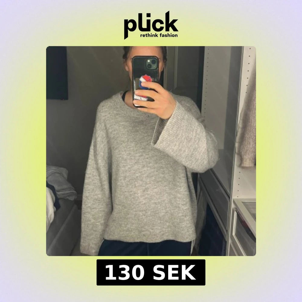 Mysig grå stickad tröja från Gina Tricot i oversized modell. Tröjan har breda ärmar, rund halsringning och ribbade muddar. Pris är diskuterbart
