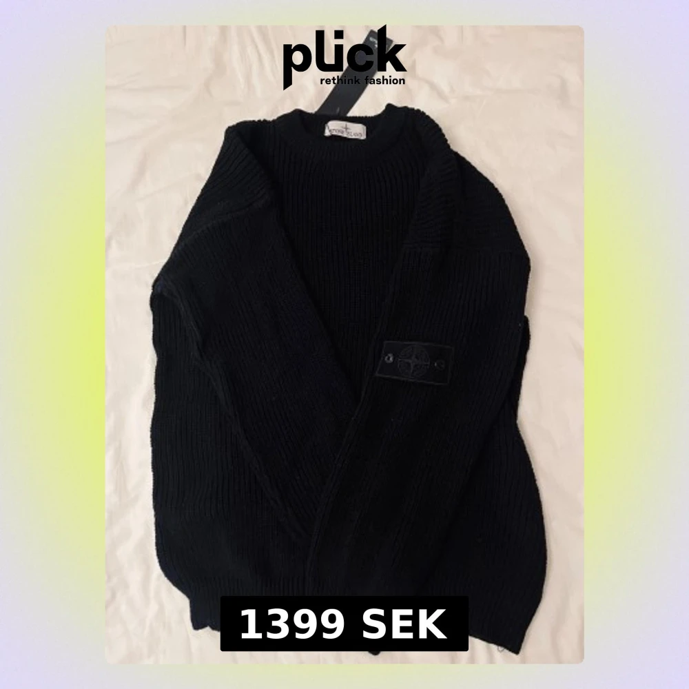 HELT NY Svart stickad tröja från Stone Island med klassisk rund hals och ribbade muddar. Tröjan har den ikoniska Stone Island-patchen på ärmen och är tillverkad i grovstickad ull som ger en schysst och clean look. Perfekt nu till vintern! Tröjan är storlek L men passar M. Tröjan är köpt på nk och säljs pga att den var för liten för mig. Pris går att diskutera.