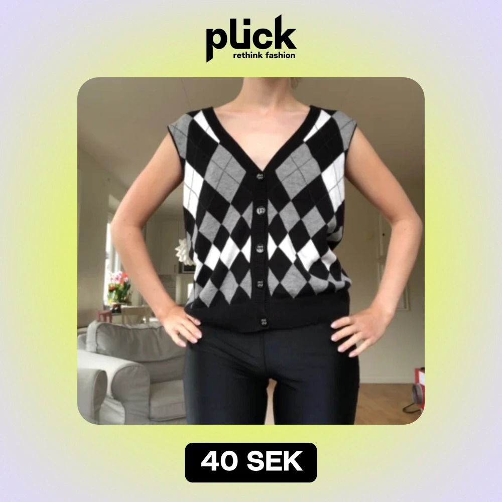 Rutig väst, köpt second hand men i mycket gott skick. Knapparna går att knäppa upp. Sitter lite pösigare på mig som är XS/S men går att ha som M & L också 🩷 Tryck gärna på köp nu!