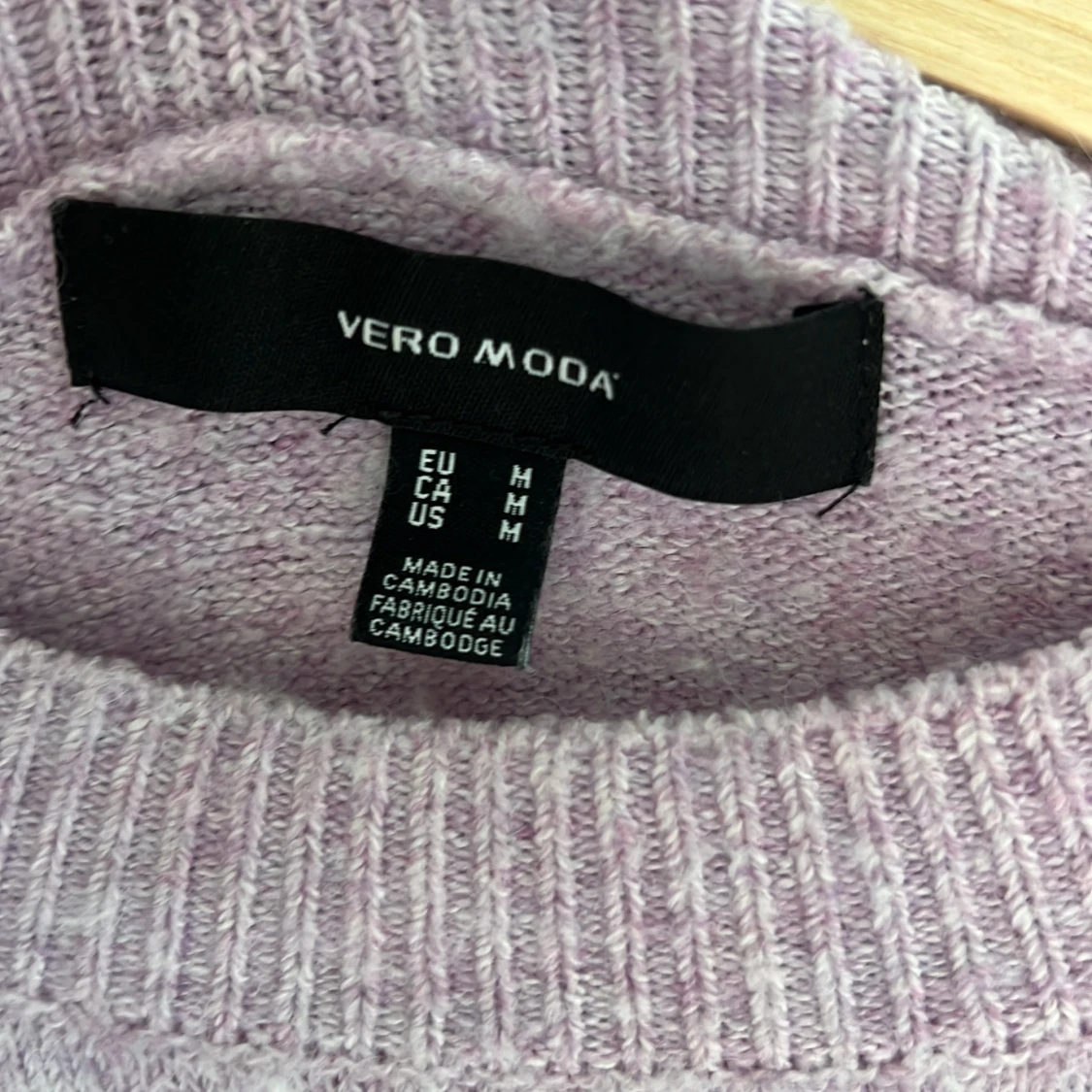 Superfin ljuslila stickad tröja från Vero Moda med korta puffärmar och ribbade muddar. Perfekt för dig som vill ha en mjuk och mysig look med lite volym i ärmarna. Enkel rund halsringning och relaxed fit.