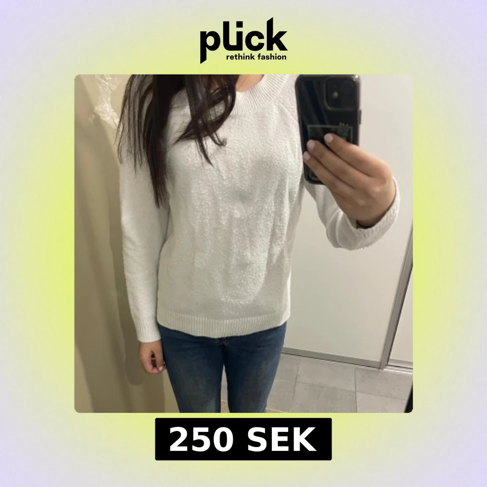 Säljer en stilren vit stickad tröja med rund hals och långa ärmar. Perfekt för kyligare dagar och lätt att matcha med olika outfits.