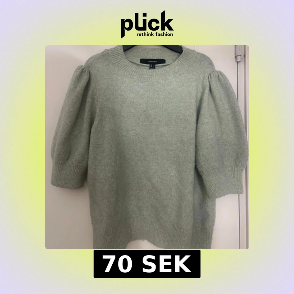 Mysig ljusgrön stickad tröja från Vero Moda med puffade trekvartsärmar. Jättesnygg till kystombyxor eller jeans, perfekt till vardagen! 💞