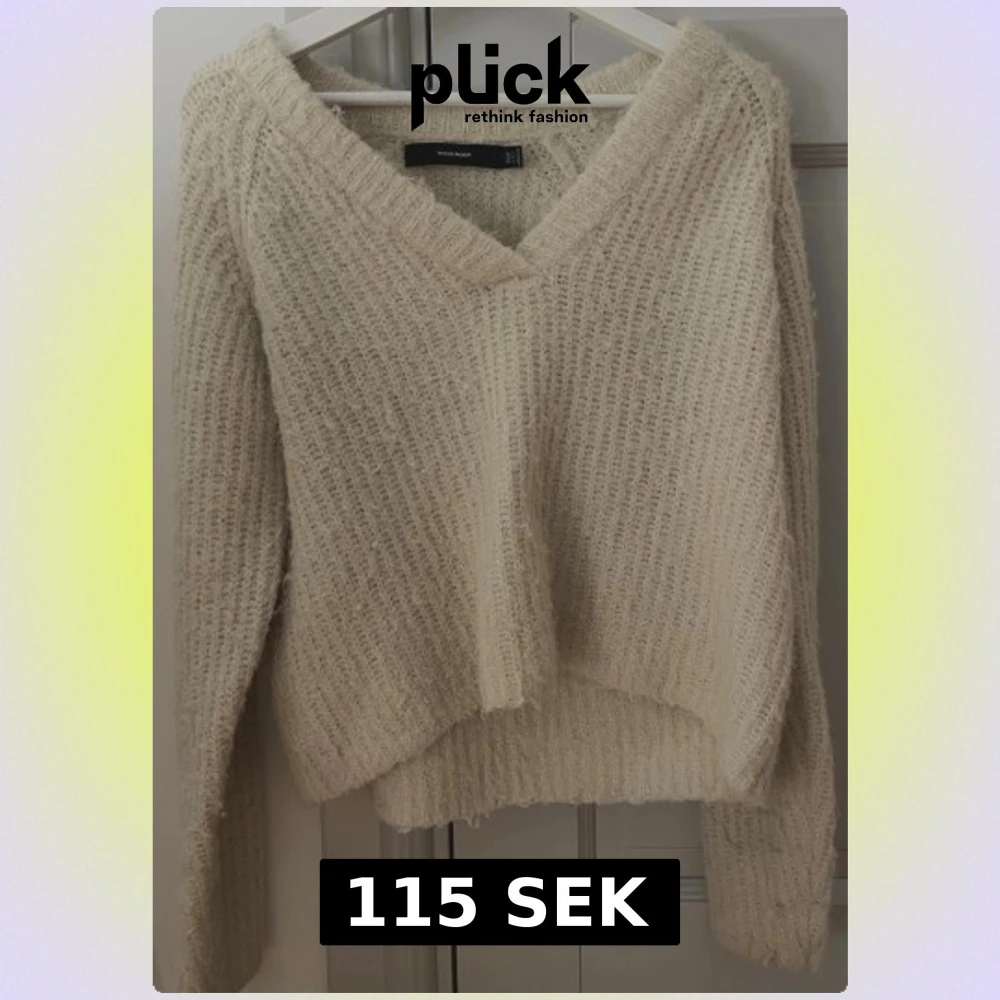 Mysig beige stickad tröja från Vero Moda med V-ringad hals och långärmad design. Tröjan har en loose passform och grovstickad struktur som ger en chill och avslappnad vibe. Perfekt för lager-på-lager under kyliga dagar.