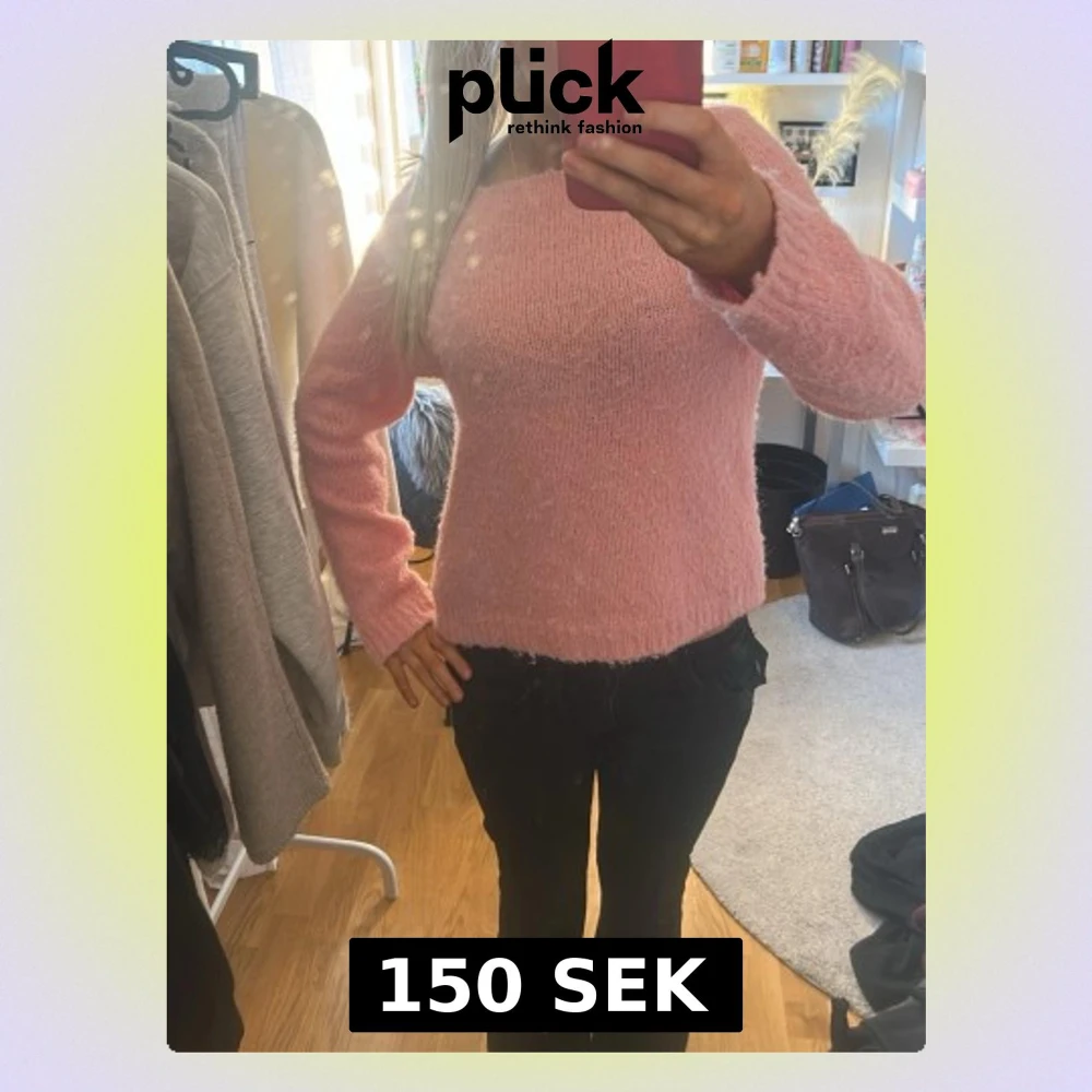 Mysig ljusrosa stickad tröja med fluffig textur och rund hals. Tröjan har långa ärmar och en rak passform som ger en avslappnad look. Perfekt för dig som gillar en söt och enkel stil.