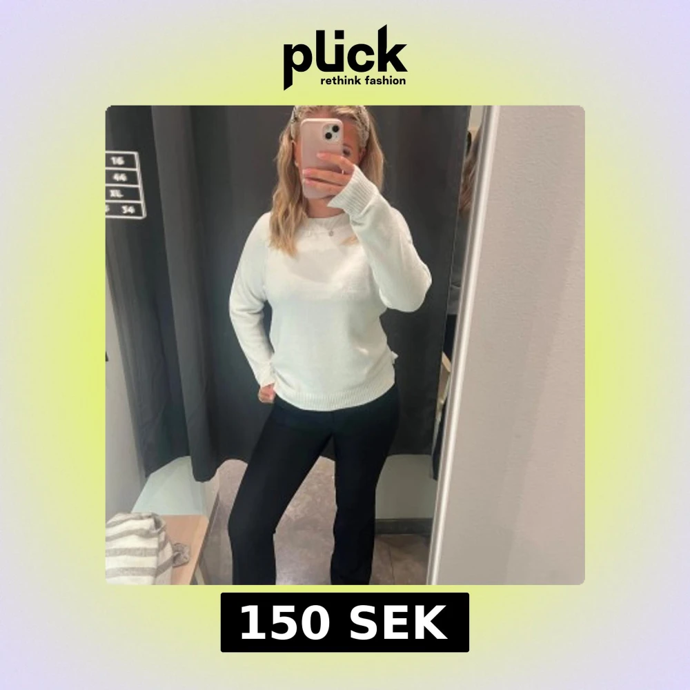 Säljer en stilren vit stickad tröja med långa ärmar och ribbade muddar. Nyskick