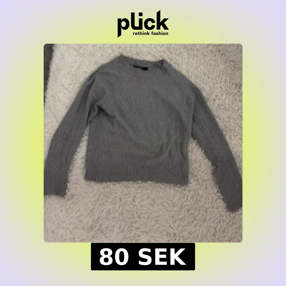 Säljer en stilren grå stickad tröja med långa ärmar. Perfekt för kyligare dagar och enkel att matcha med olika outfits. Tröjan har ribbade muddar vid ärmslut och nederkant för en bekväm passform.