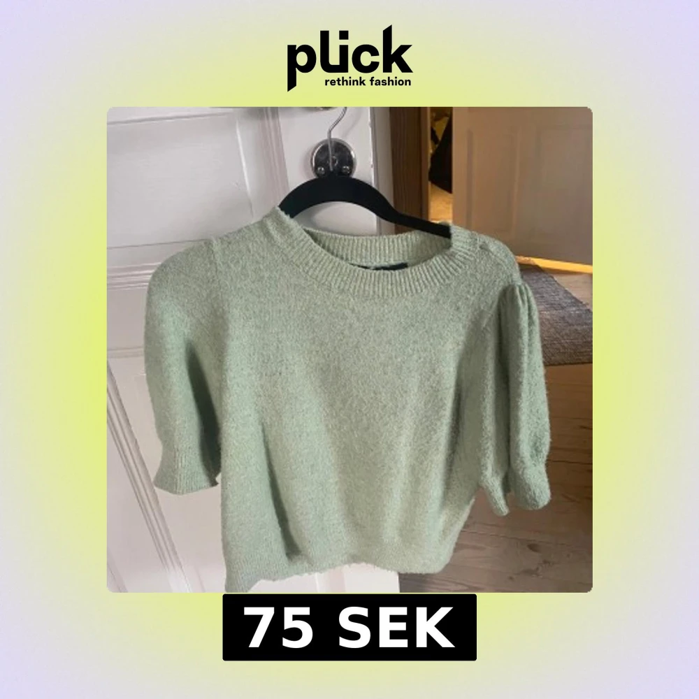 Superfin ljusgrön stickad tröja från Vero Moda med korta ärmar och rund hals. Tröjan har en mjuk och fluffig känsla, perfekt för lager på lager. Passar dig som gillar en avslappnad men ändå söt stil. Den är rätt så nopprig men annars är den i bra skick.