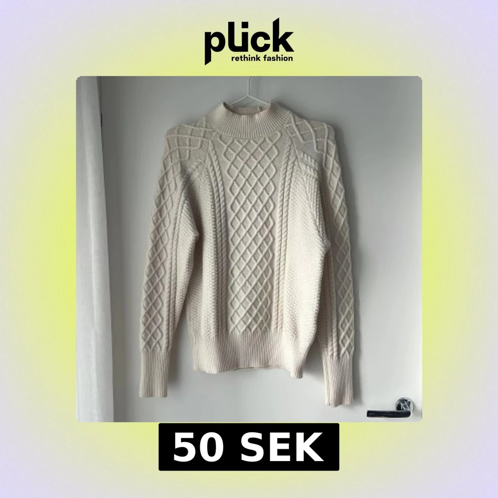 Säljer en creme vit stickad tröja från Vero Moda i storlek S. Tröjan har ett snyggt flätmönster framtill och på ärmarna, samt en ribbad hög krage och muddar. Perfekt för dig som gillar mysiga och stilrena plagg med lite extra struktur.