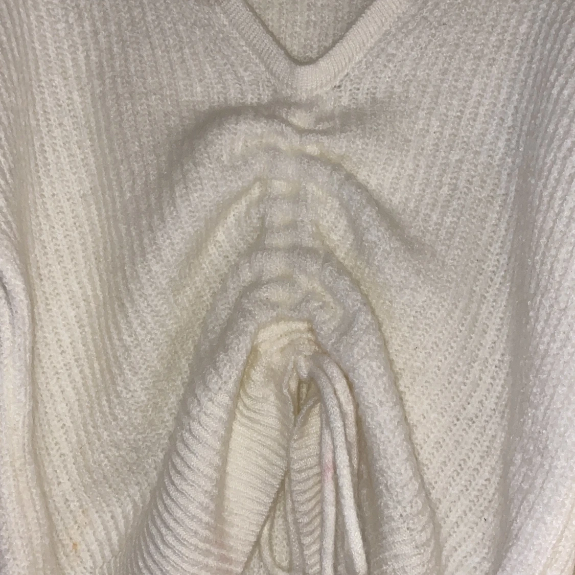 Super fin vit stickad tröja som har en slags snörrning i mitten går och dra åt hur mycket som helst den är aldrig använd och har inte defekter storlek M sitter mer som en lite oversized s enligt mig nypris:429 mitt pris:289