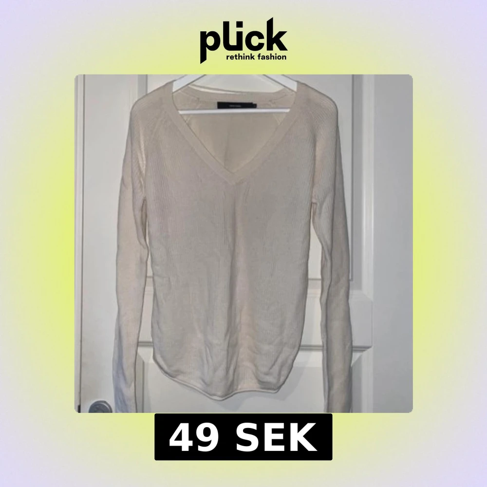 Beige stickad tröja från Vero Moda i storlek XS. Tröjan har v-ringning, lång ärm och är ribbstickad för en snygg och enkel look. Perfekt att matcha med jeans eller kjol för en clean stil.