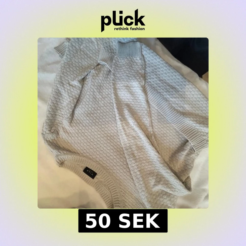 Säljer en stilren grå stickad tröja från Vila. Tröjan har ett diskret mönster och ribbade muddar vid ärmslut och nederkant. Perfekt för kyligare dagar smuts vit.