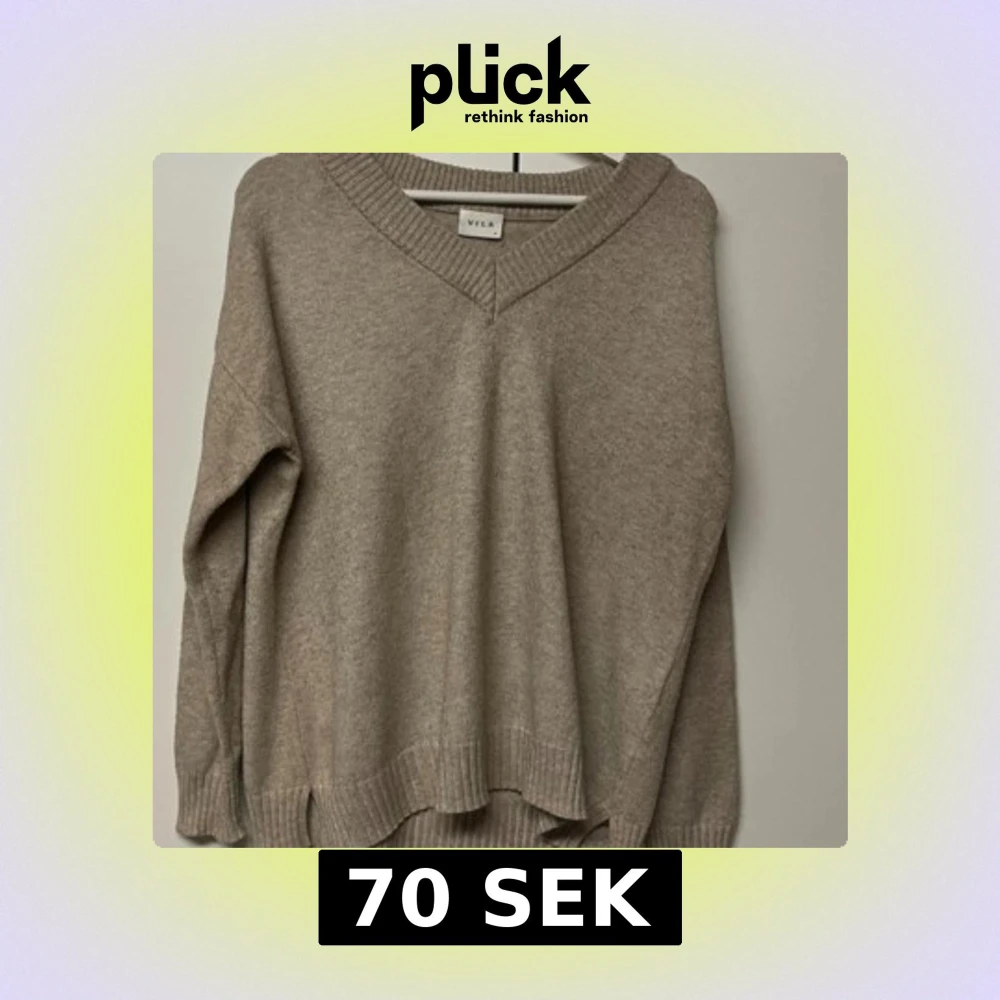 Mysig beige stickad tröja från Vila med v-ringad hals och ribbade muddar vid ärmslut och nederkant.